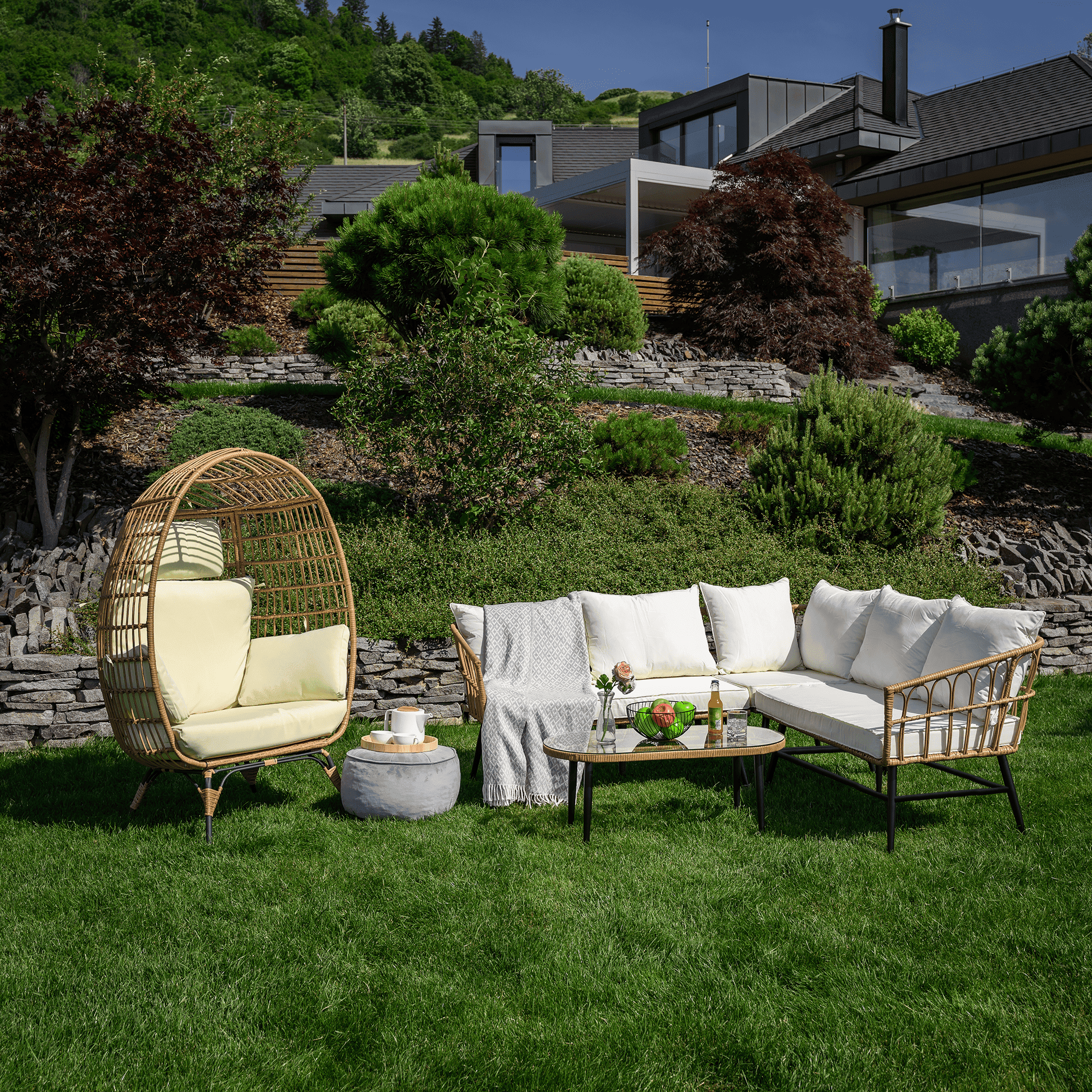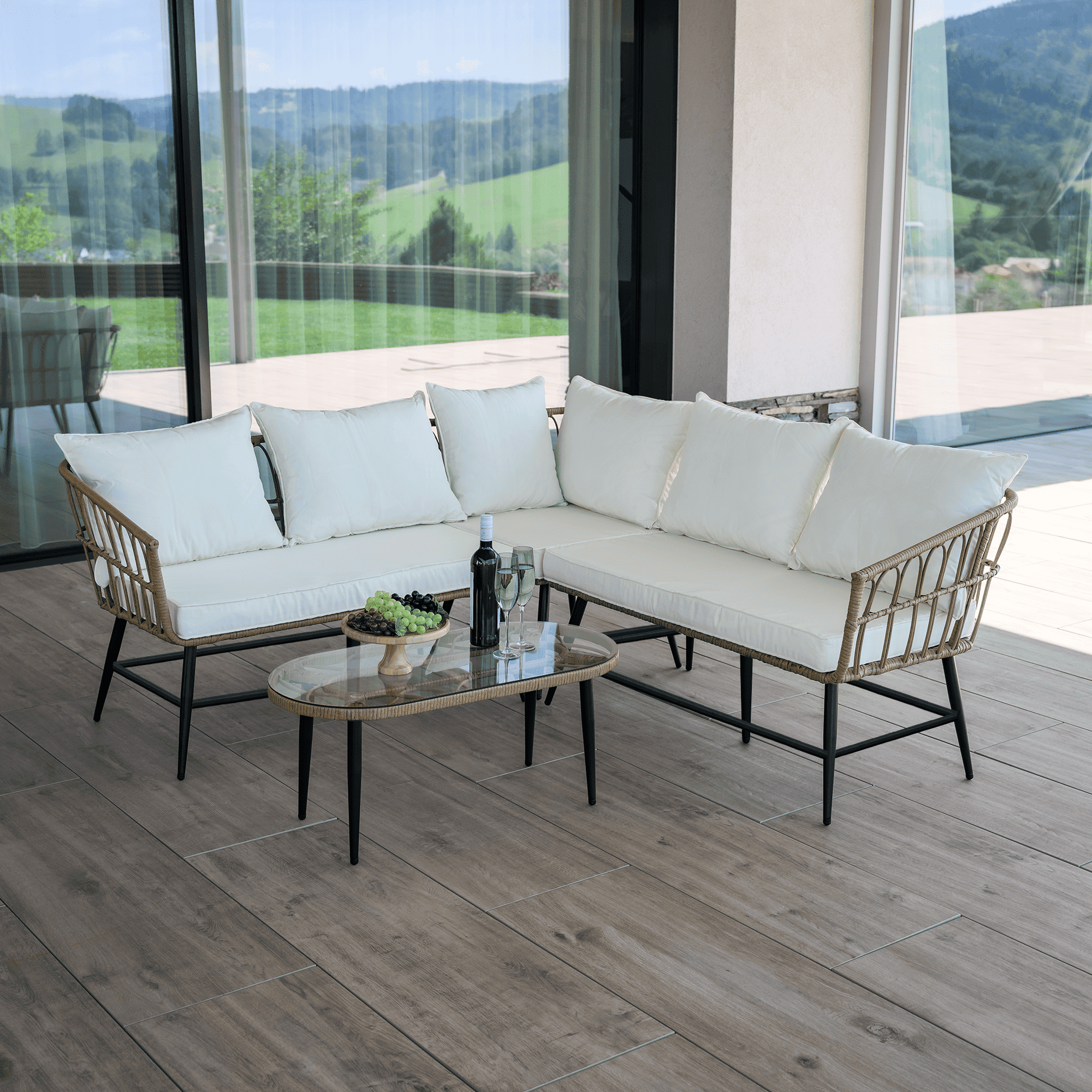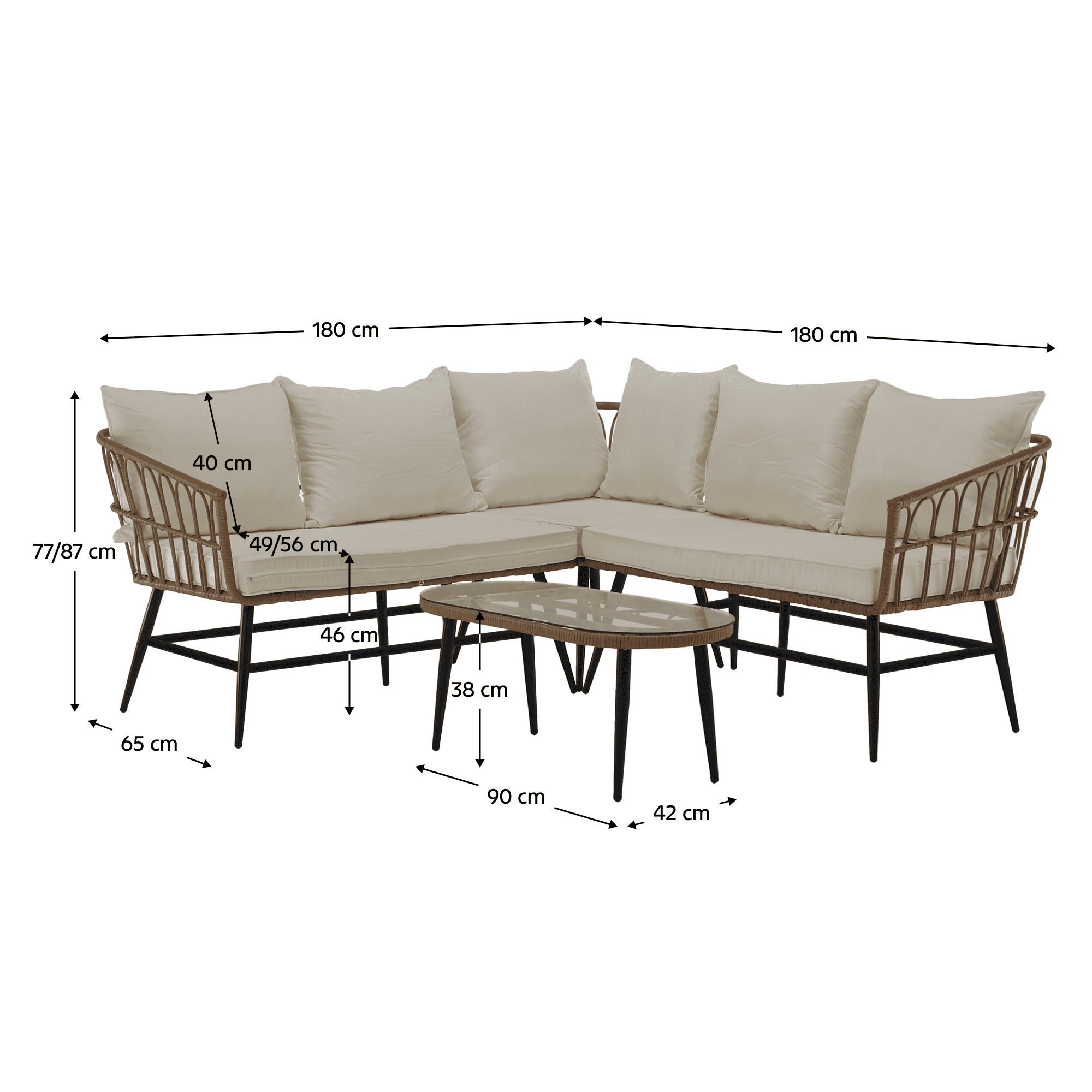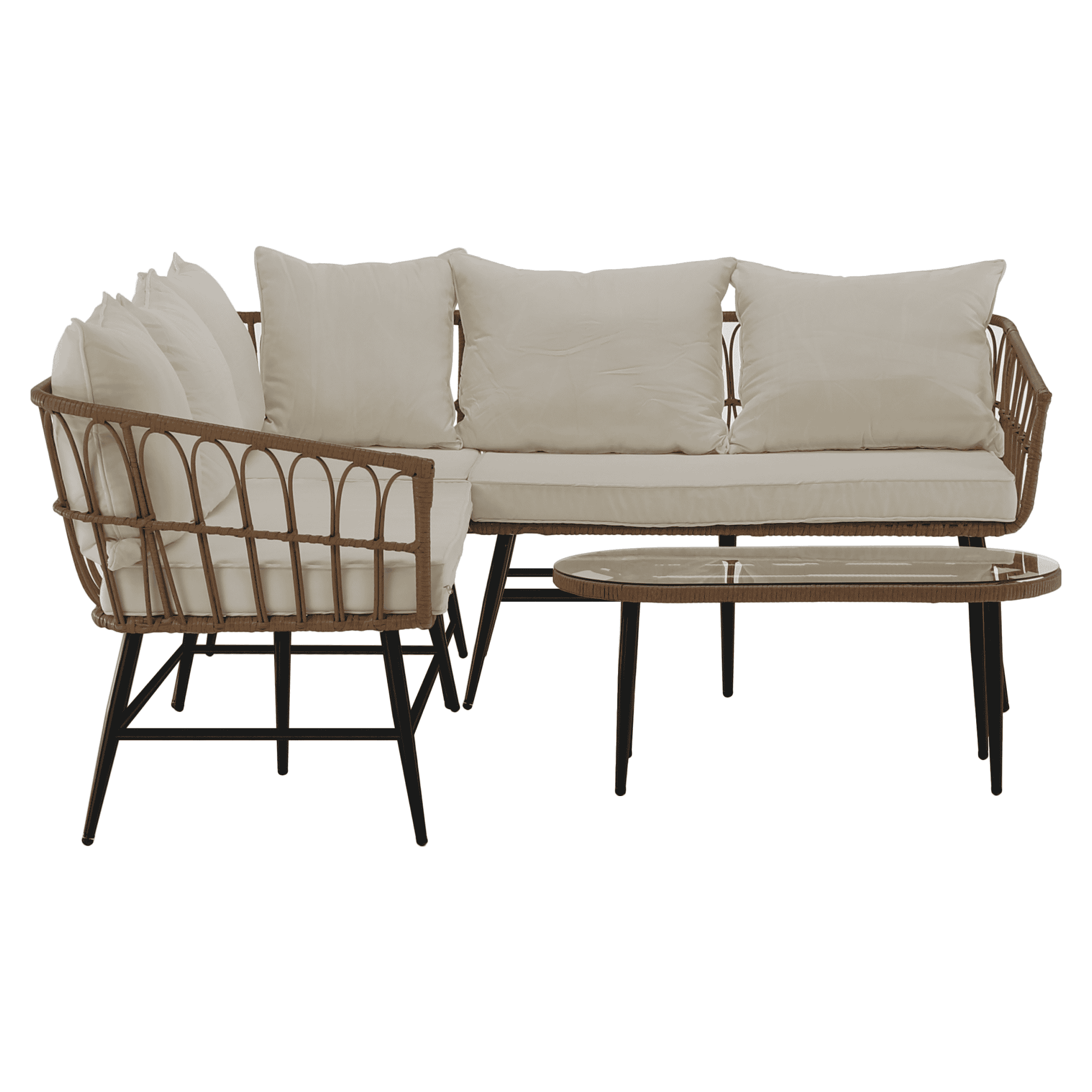 Set de grădină din ratan, natural / bej / negru , ARALY