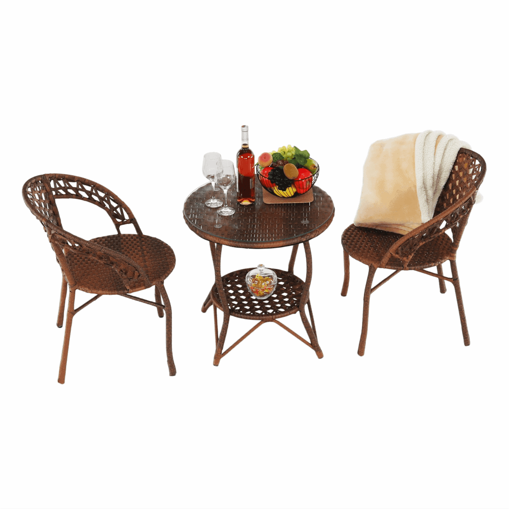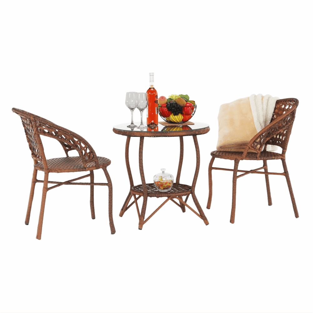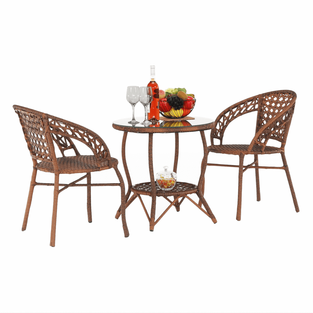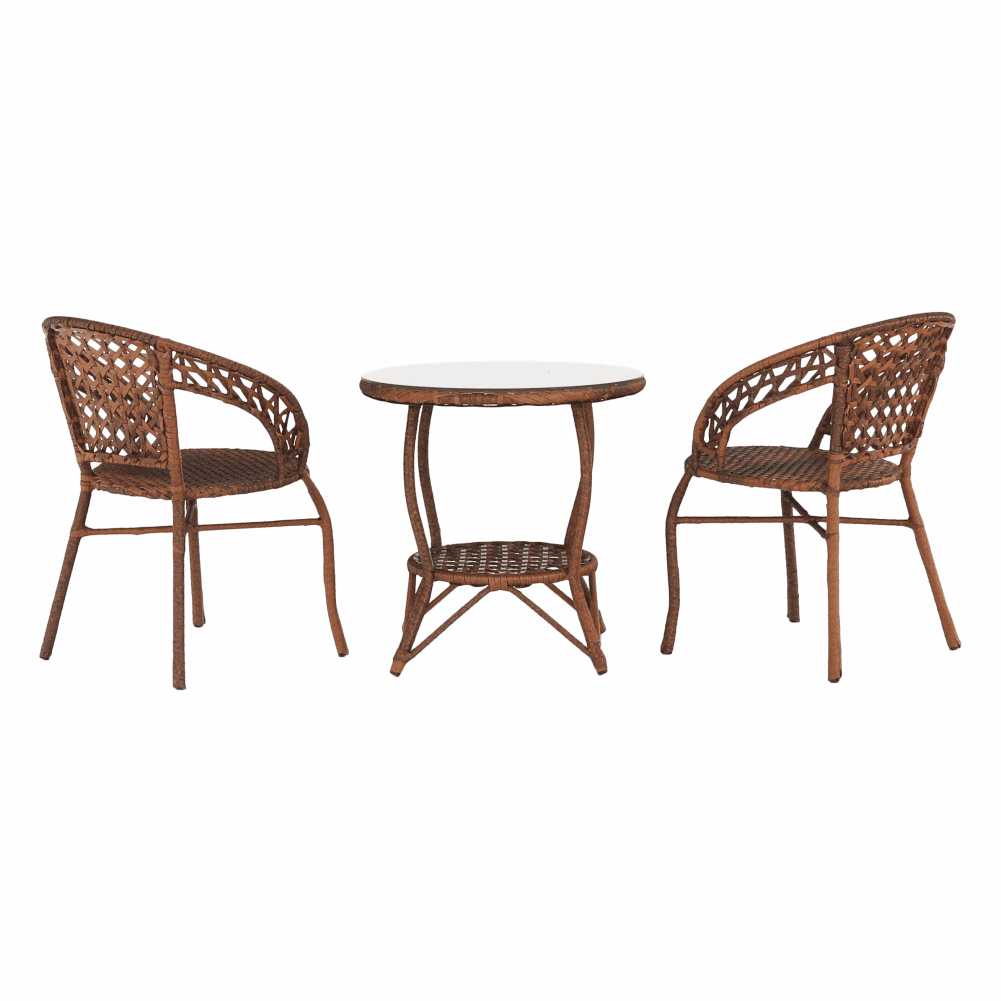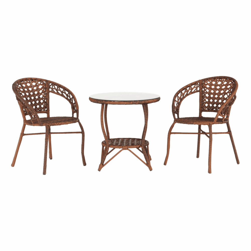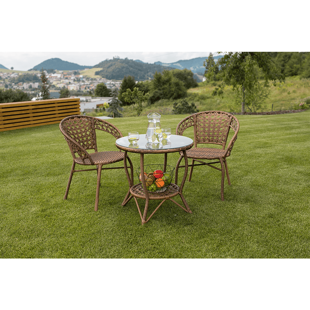 Set de grădină din rattan 1 + 2, maro, JARUB
