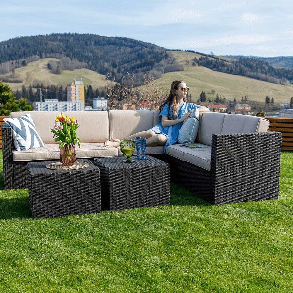 Material: ratan artificial/ţesătură/spumă