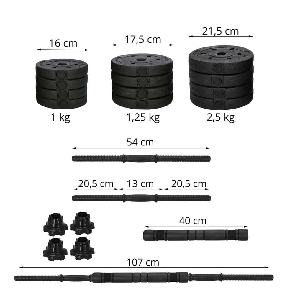 Set de greutati multifunctionale transformabil in gantere, kettlebell, haltera, total 19 kg Mob360