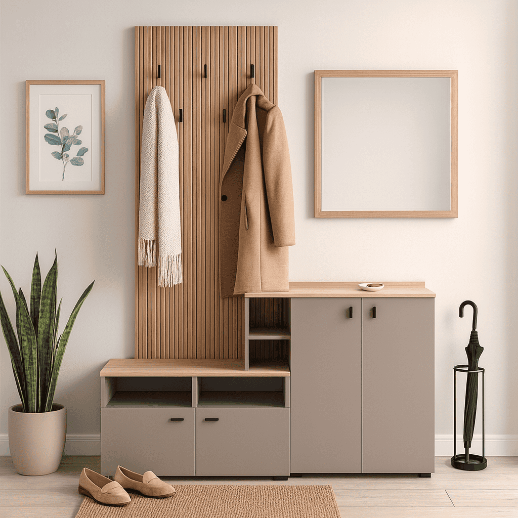 Material: DTD laminat Culoare toffee/natural canella strata/stejar cremona torro Dimensiuni (lxAxh): 138,5×41,2×204,7 cm Grosimea materialului DTD: 1,6 cm Dulap cu poliţe Spaţiu de depozitare deschis Cuier pentru perete Cu cârlige Material cârlige: plastic Culoare cârlig: negru Oglindă Grosimea sticlei: 3 mm Cu mânere Material mânere: metal Culoarea mânerelor: neagră Pe picioare Material picioare: metal Culoare picioare: neagră Înălţimea picioarelor: 2,5 cm Margini: hârtie acoperită cu polimeri termoreactivi Grosime PVC: 0,5 mm Grosime DTD partea din spate: 0,3 cm Culoarea părţii din spate: albă Balamale Portanţă cârlige: 2 kg Portanţă poliţă: 4 kg Portanţă placă superioară: 15 kg Design modern Recomandăm ataşarea de perete Livrat dezasamblat