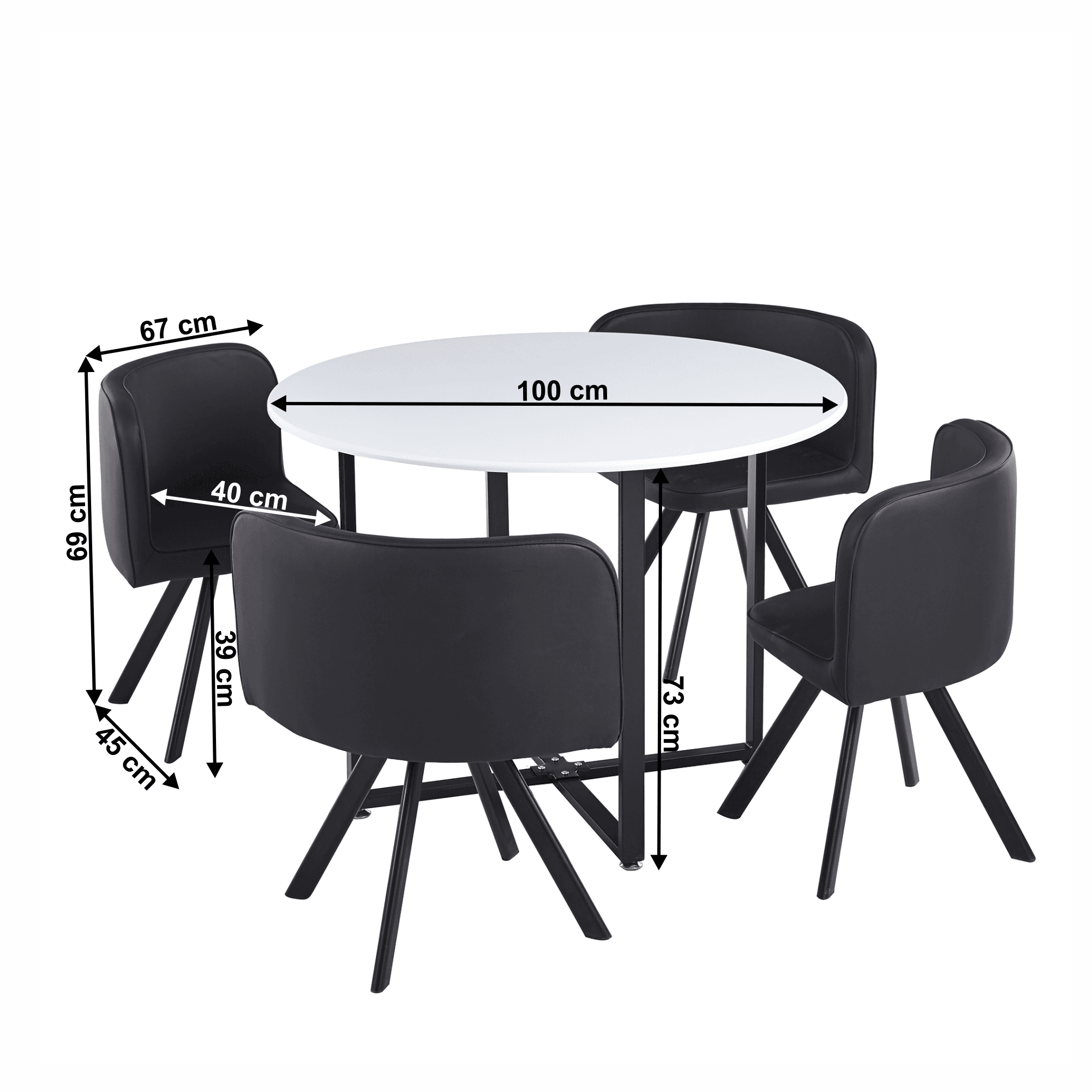 Set de mobilier dining 1+4, alb/negru, BEVAN NEW