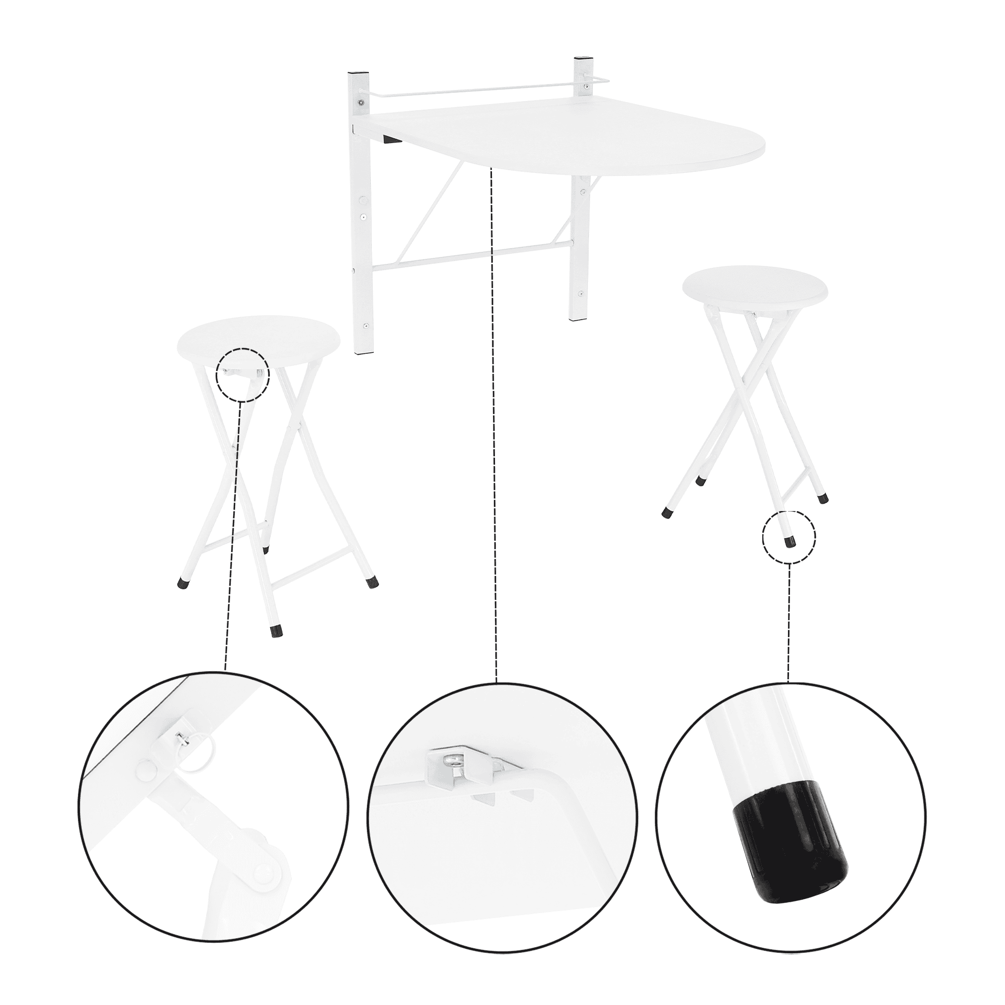 Material: MDF/metal Culoare: albă Dimensiuni (lxAxh): 60x80x75 cm Dimensiunea scaunului (lxh): 30×47 cm Grosime material: 1,5 cm Portanţă scaun: 80 kg Capacitatea mesei: 15 kg Set din 3 piese Masă 2x scaun Pliabil Modern Practic Livrat dezasamblat