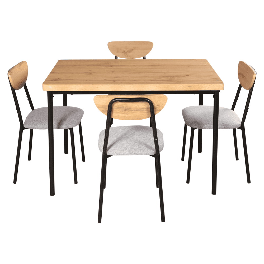 Set de sufragerie 1+4, stejar deschis/gri/negru, MADIO