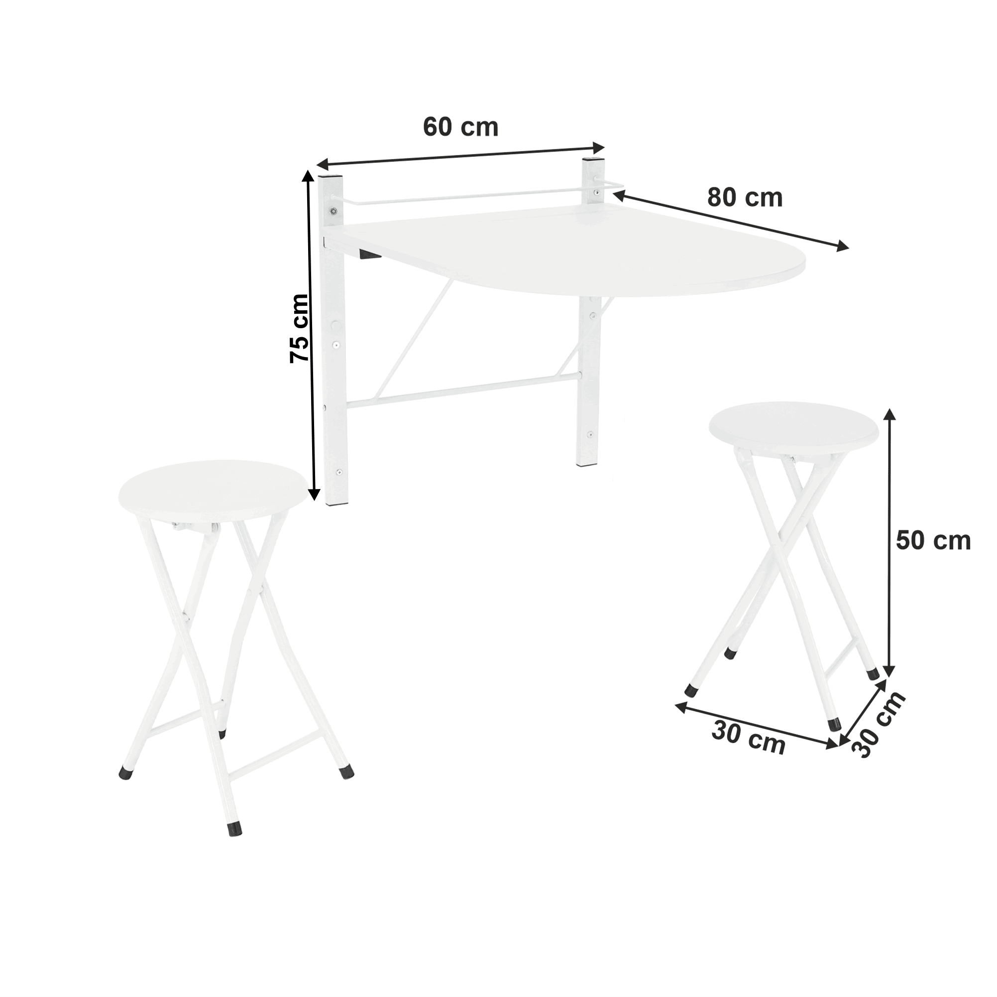 Dimensiuni (lxhxA): masă: 80x60x75 cm, scaun: 30x50x30 cm.