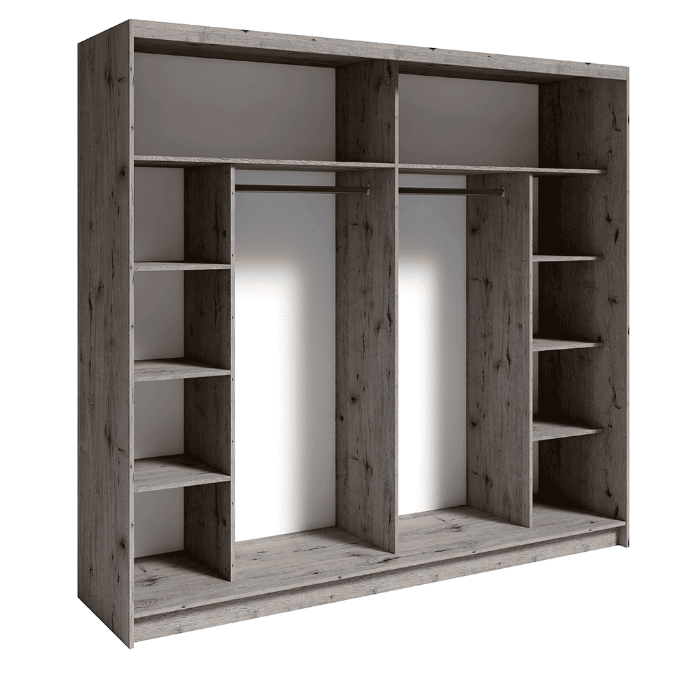 Interiorul dulapului este realizat din parte pentru umeraşe şi parte raft