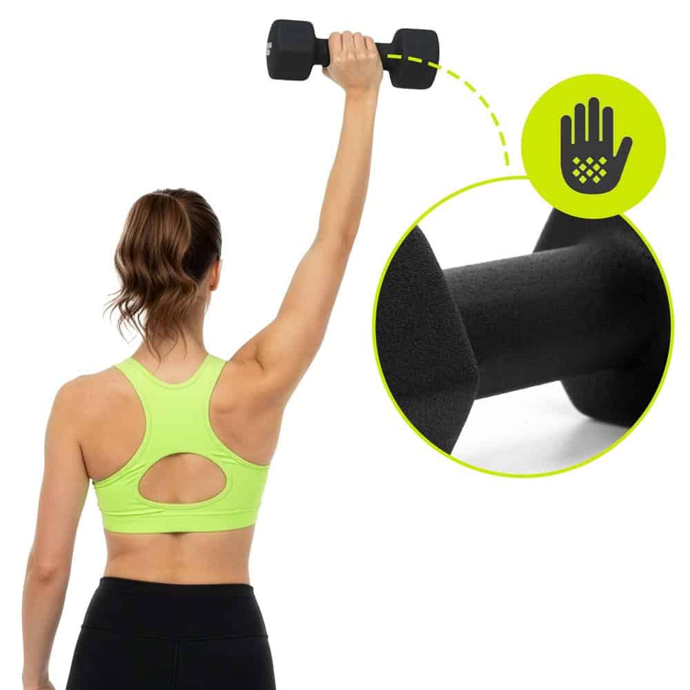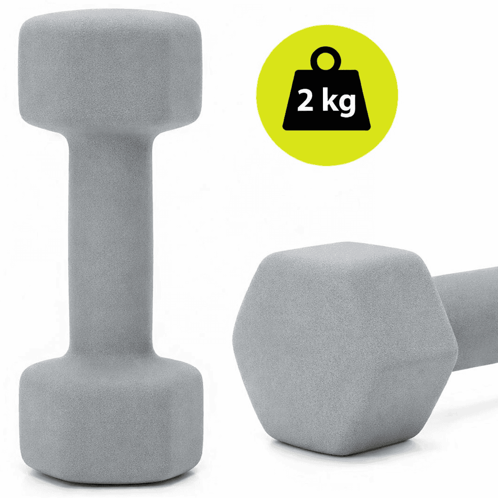 - Acest set complet de gantere cu capete hexagonale si greutate totala de 12 kg este ideal pentru antrenamentele acasa. Diferitele greutati iti permit sa adaptezi exercitiile in functie de nivelul tau si de obiectivele dorite. Capetele hexagonale previn rostogolirea pe podea, oferind stabilitate si siguranta in timpul exercitiilor. Invelisul din neopren asigura confort si aderenta buna, iar suportul compact din PVC ajuta la organizarea eficienta a spatiului. Caracteristici principale: