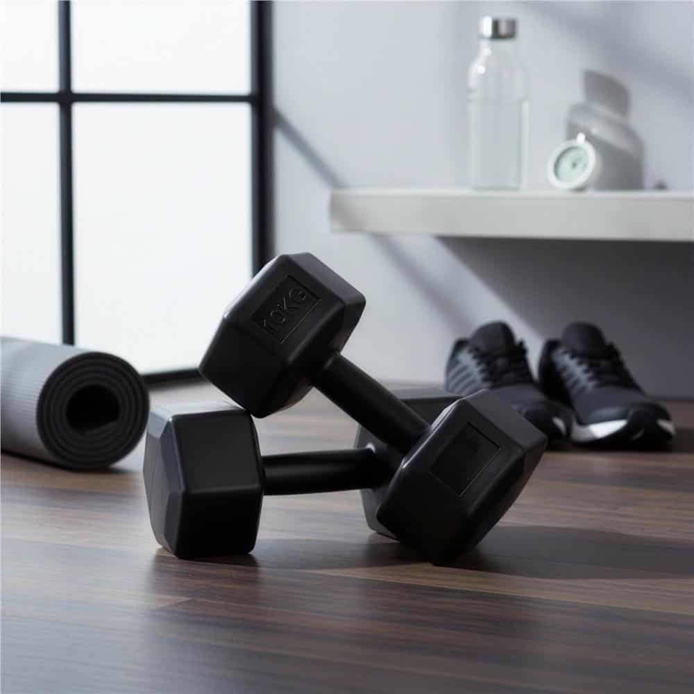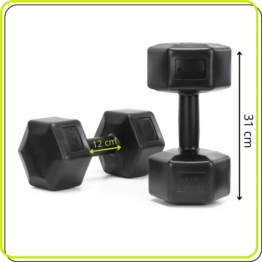 Set gantere hex 2×10 kg, bitum cu invelis rezistent PP, negru Mob360