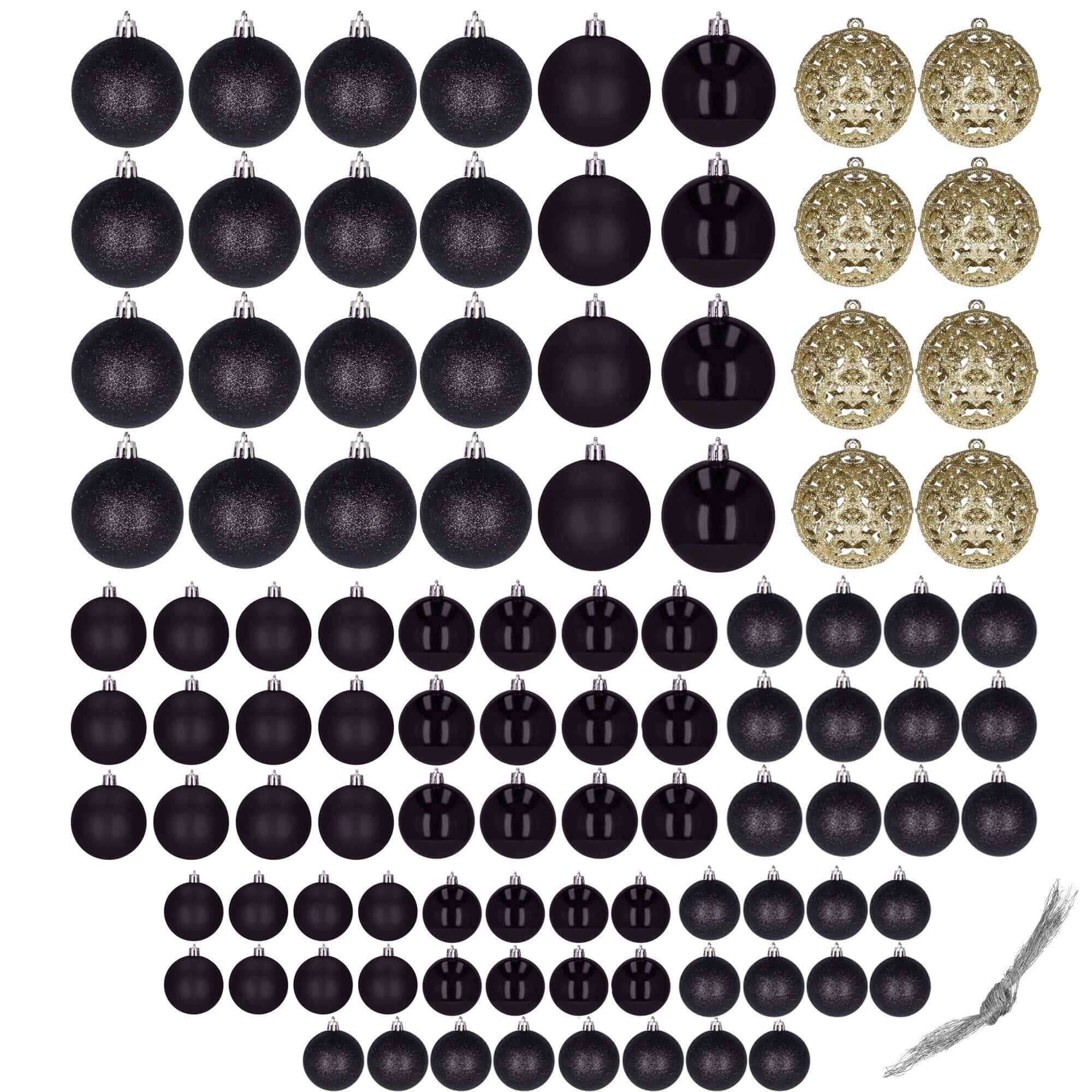 Set globuri de Craciun, 100 bucati, 3-6cm, negru auriu Mob360