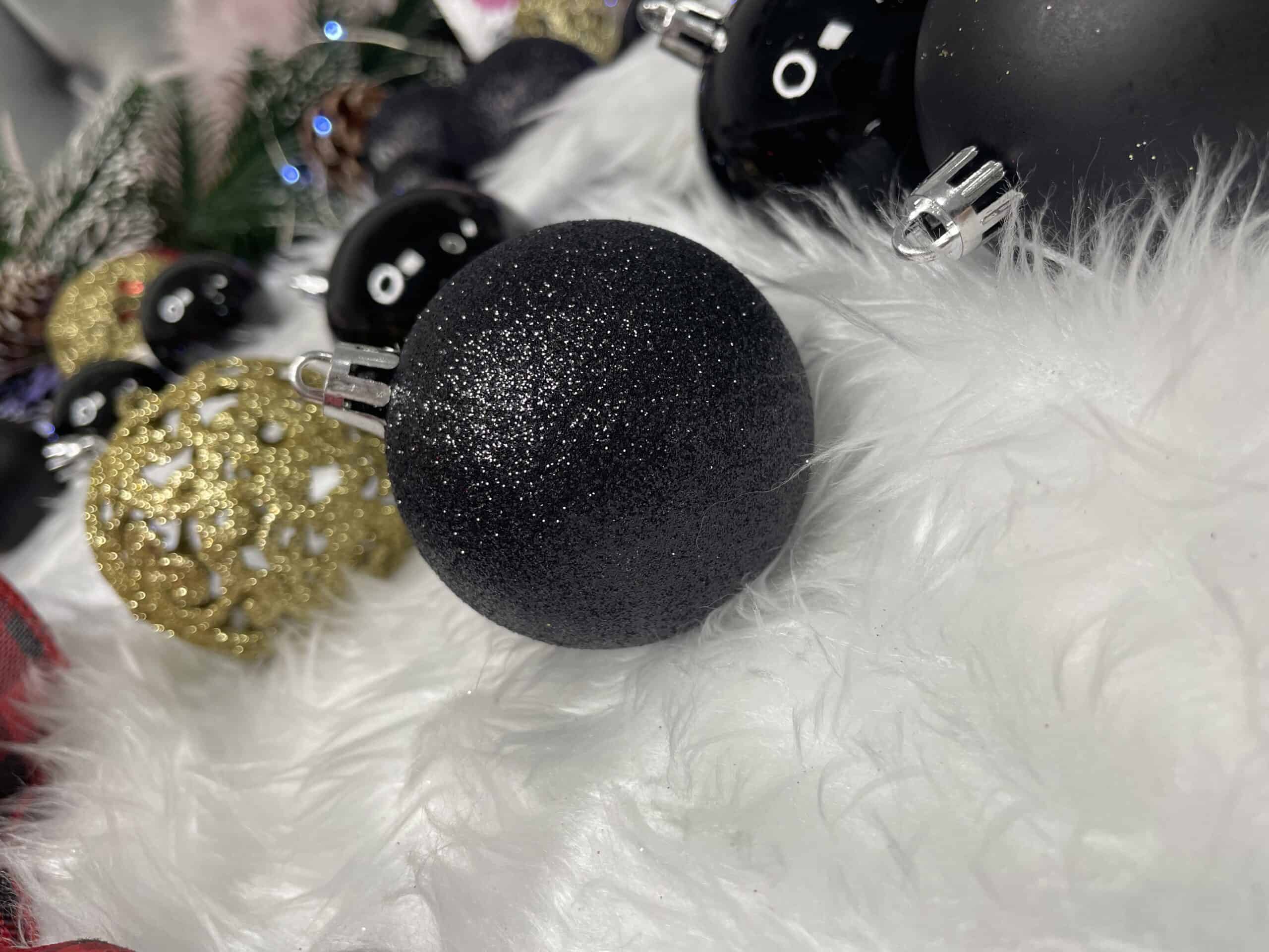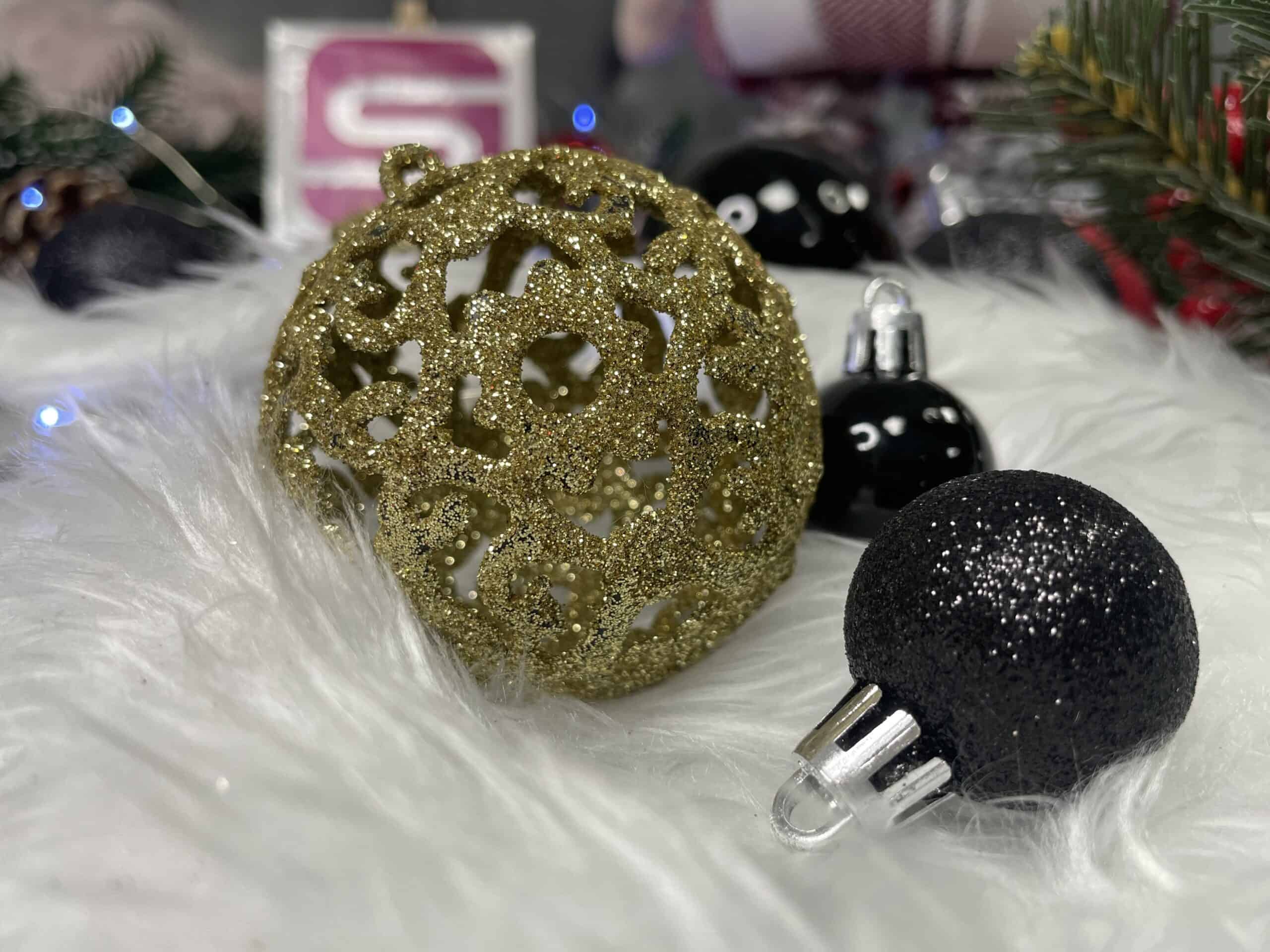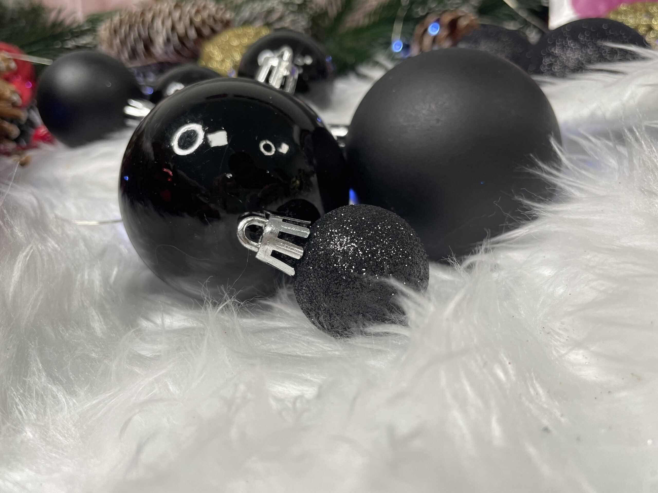 - Globurile dintr-un set cu o singura culoare va vor permite sa creati un decor minunat pentru brad. Arata frumos in timpul zilei si dupa intuneric, insotite de iluminat festiv. Setul include snururi care va permit sa agatati globurile rapid si usor in locul dorit. Designul din plastic creste siguranta datorita materialului incasabil. Alegerea lor in locul globurilor de sticla va contribui la siguranta celor mici din casa. Diversele dimensiuni va permit sa creati modele inedite de aranjare a bradului de Craciun. Culoare: negru auriu