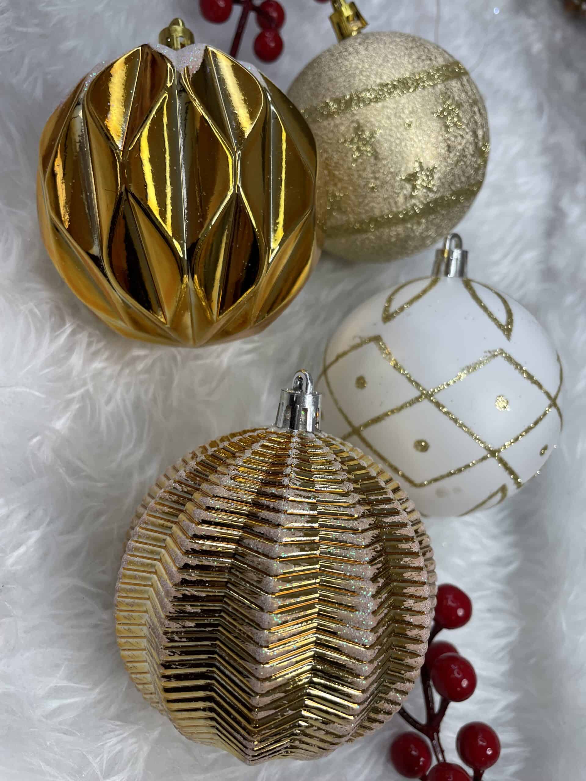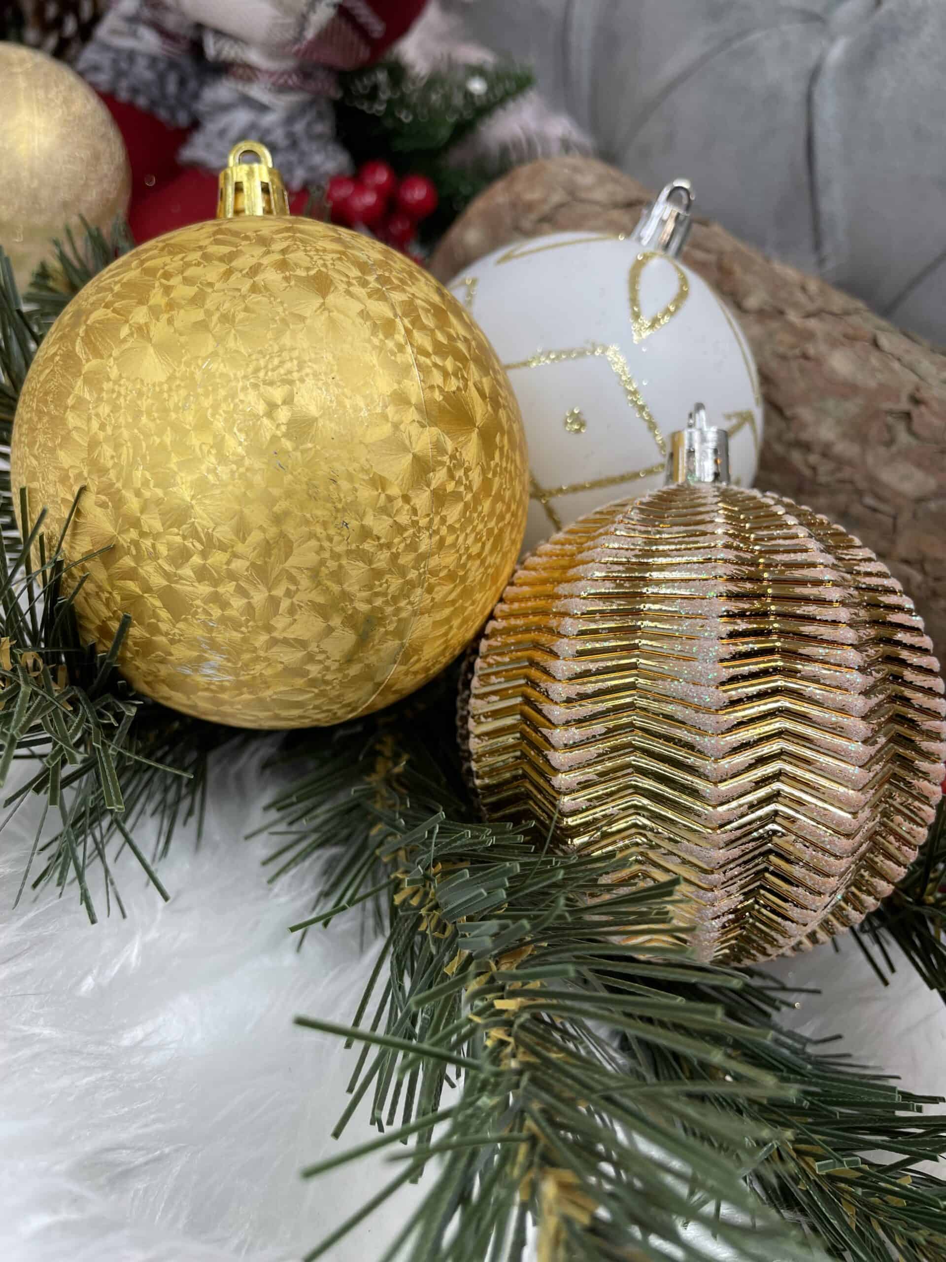 - Globurile va vor permite sa creati un decor minunat pentru brad. Arata frumos in timpul zilei si dupa intuneric, insotite de iluminat festiv. Setul include snururi care va permit sa agatati globurile rapid si usor in locul dorit. Designul din plastic creste siguranta datorita materialului incasabil. Alegerea lor in locul globurilor de sticla va contribui la siguranta celor mici din casa. Diversele dimensiuni va permit sa creati modele inedite de aranjare a bradului de Craciun. Culoare: alb auriu