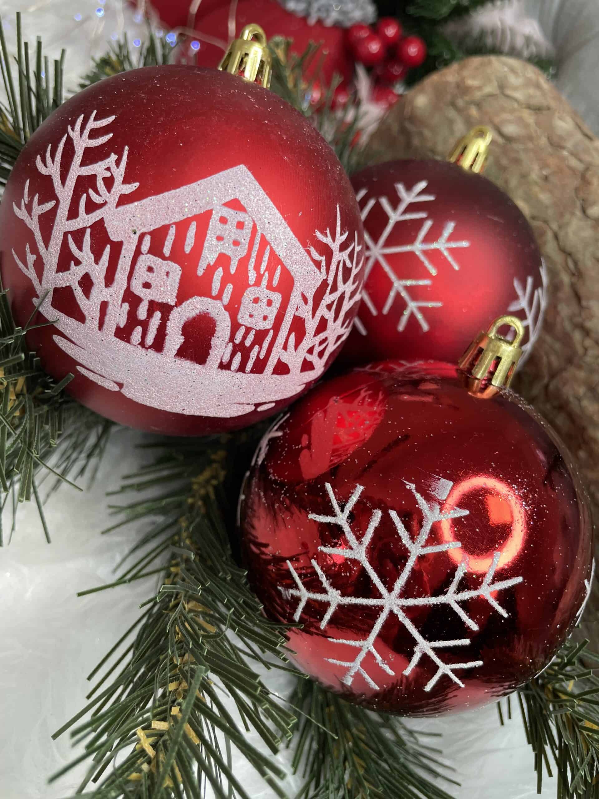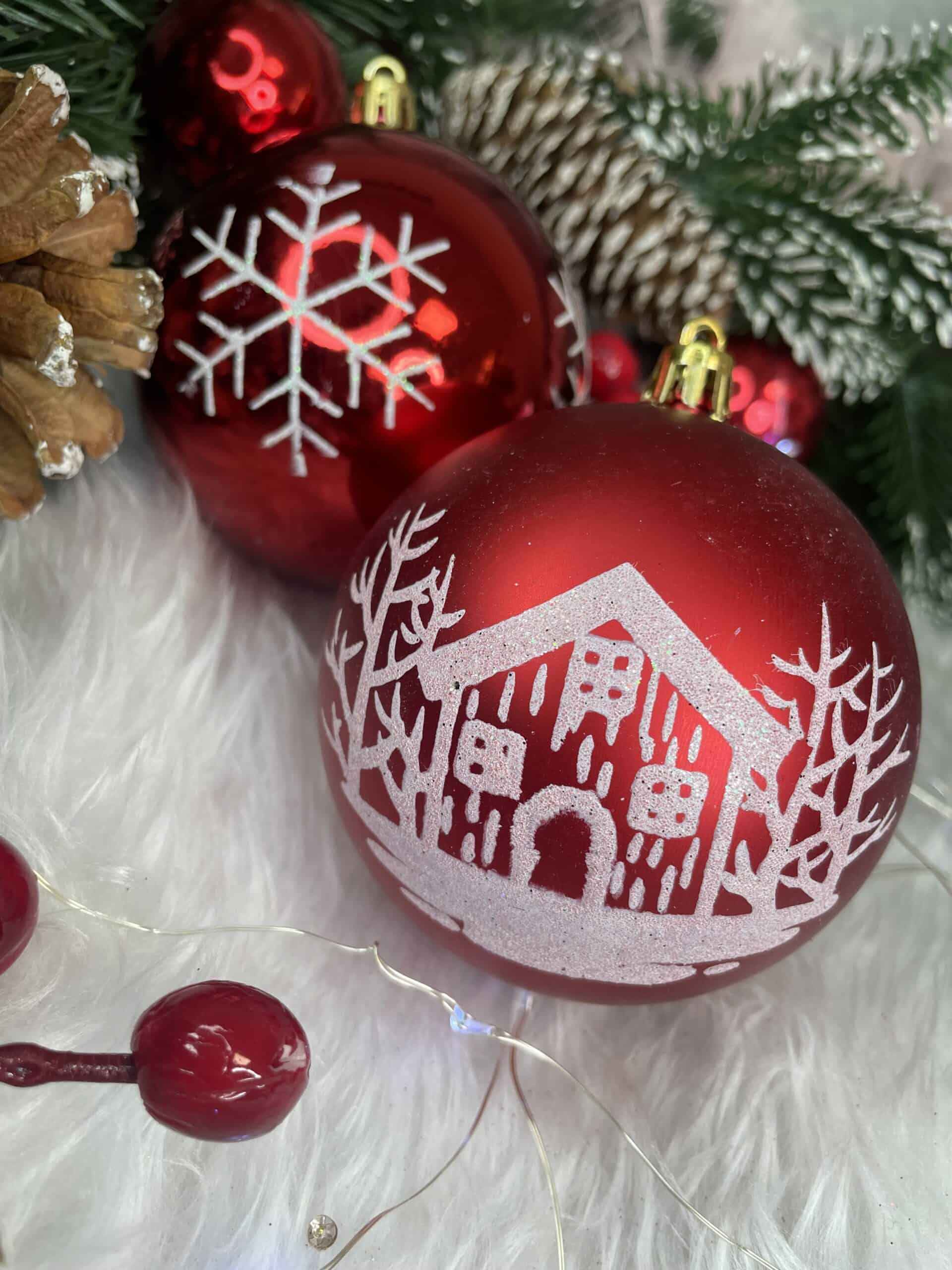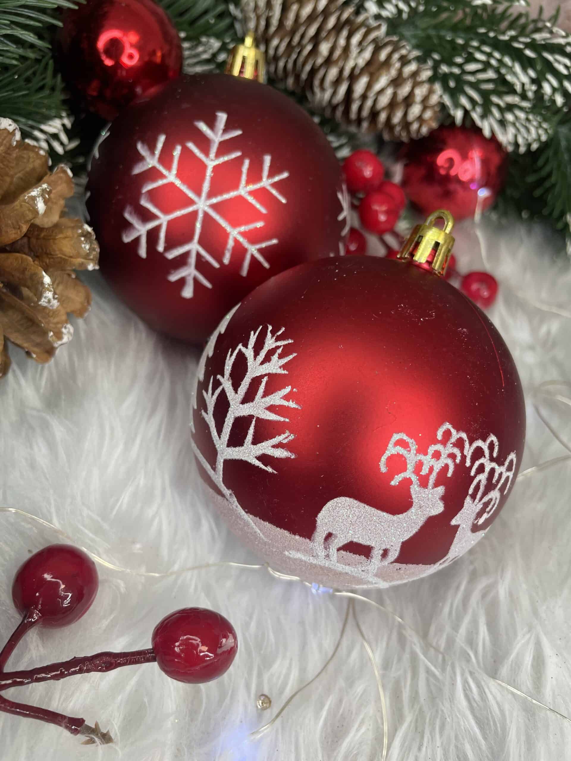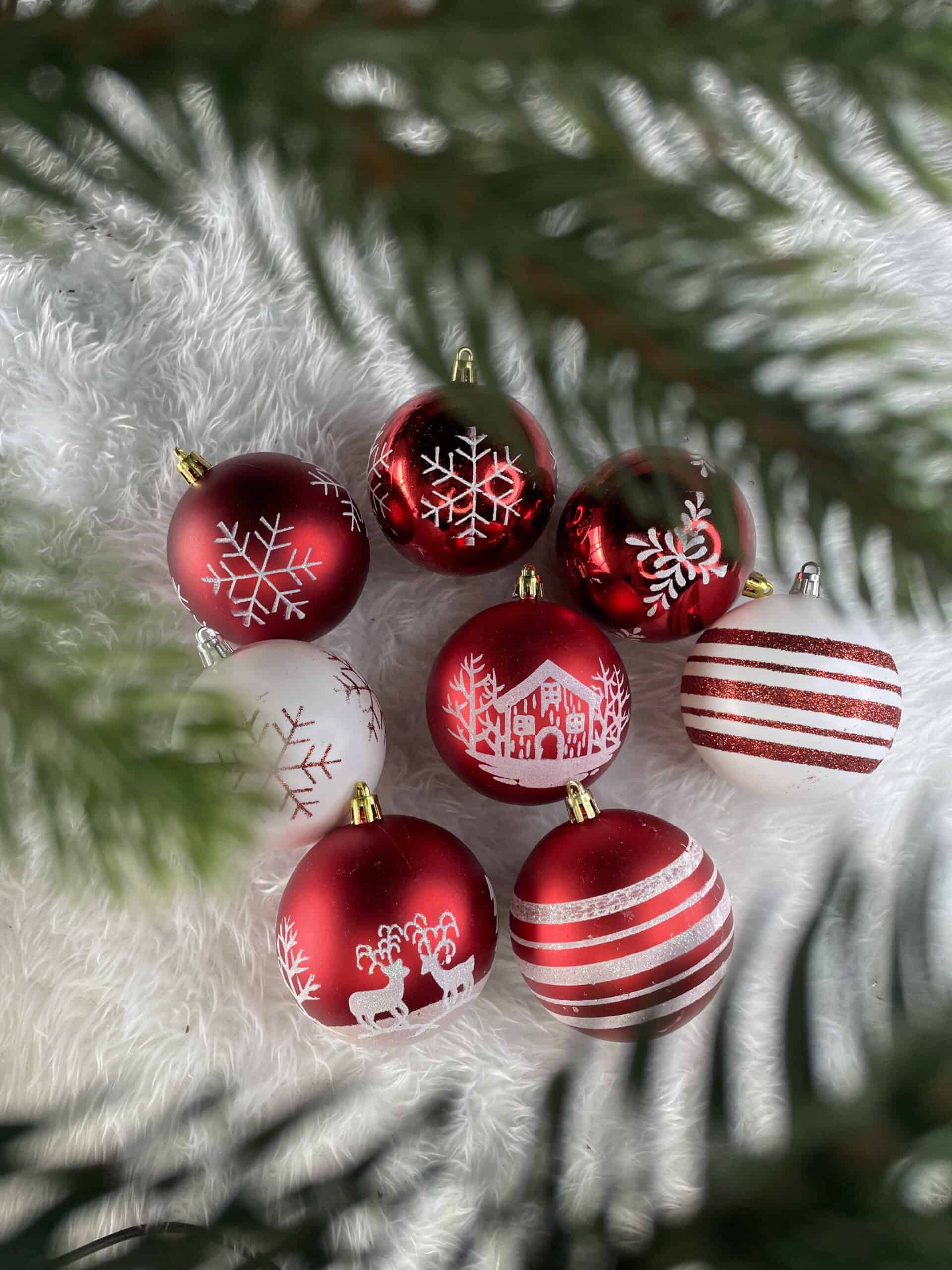 Set globuri de Craciun, 16 bucati, 8cm, 8 modele, rosu alb Mob360