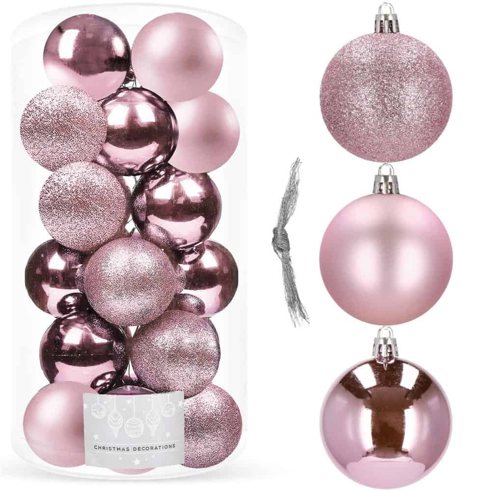 Set globuri de Craciun, 20 bucati, 3 modele, 4cm, roz Mob360