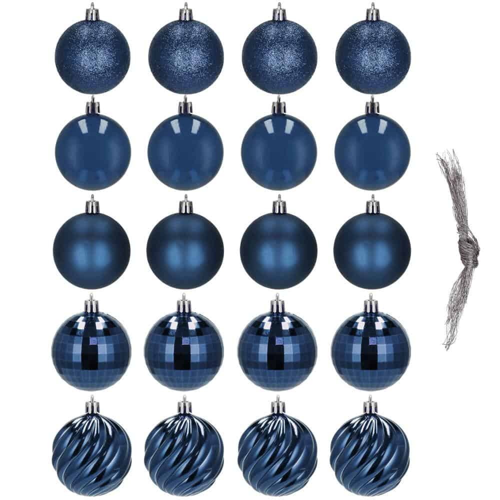 Set globuri de Craciun, 20 bucati, 5 modele, 6cm, albastru inchis Mob360
