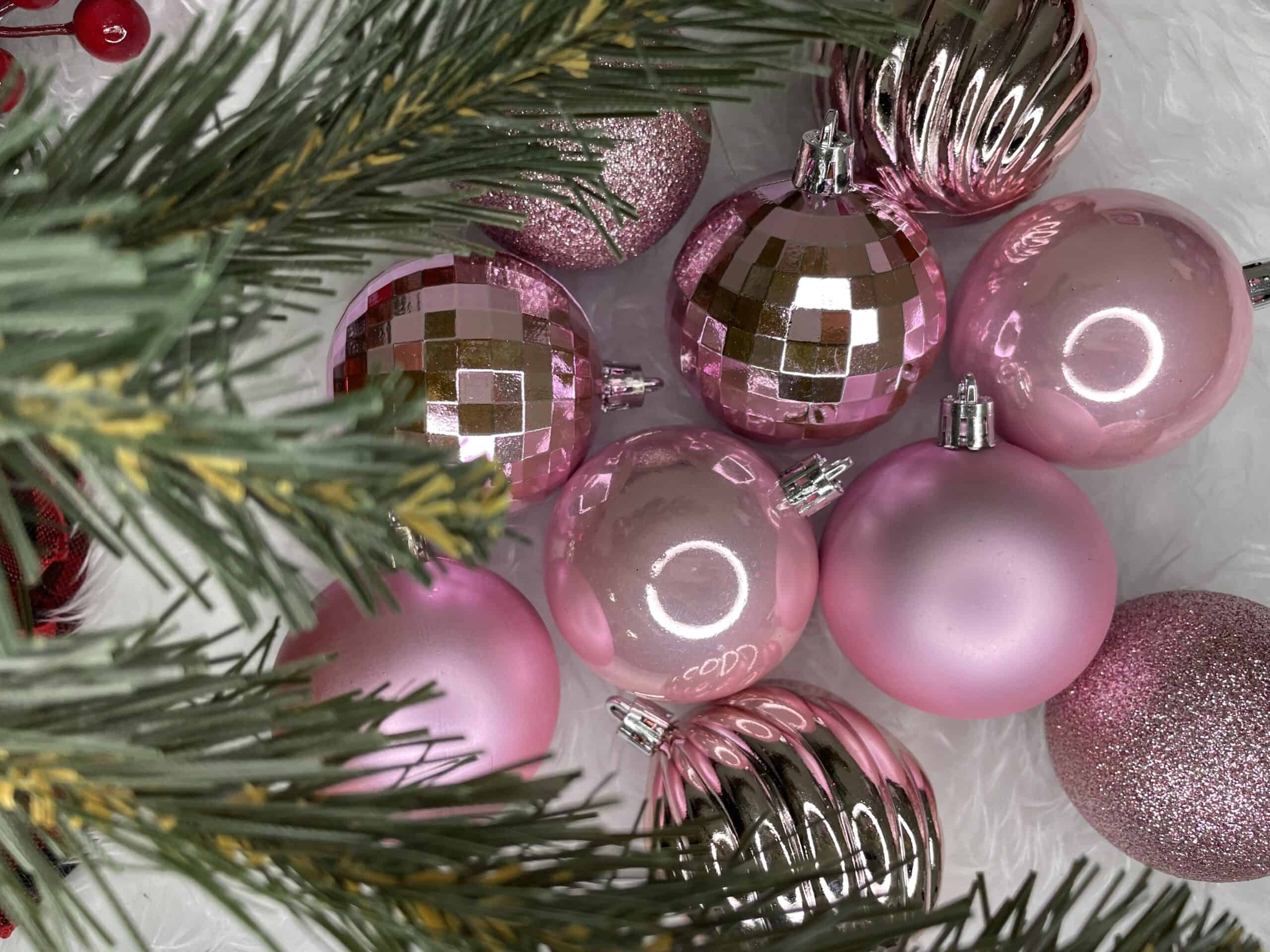 Set globuri de Craciun, 20 bucati, 5 modele, 6cm, roz Mob360