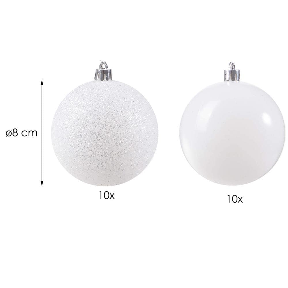 Set globuri de Craciun, 20 bucati, 8cm, alb perlat Mob360