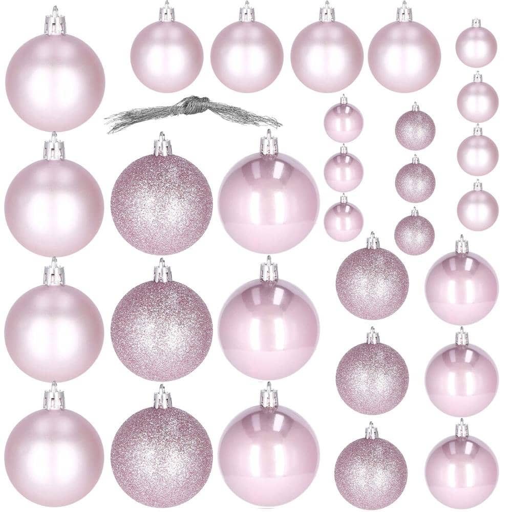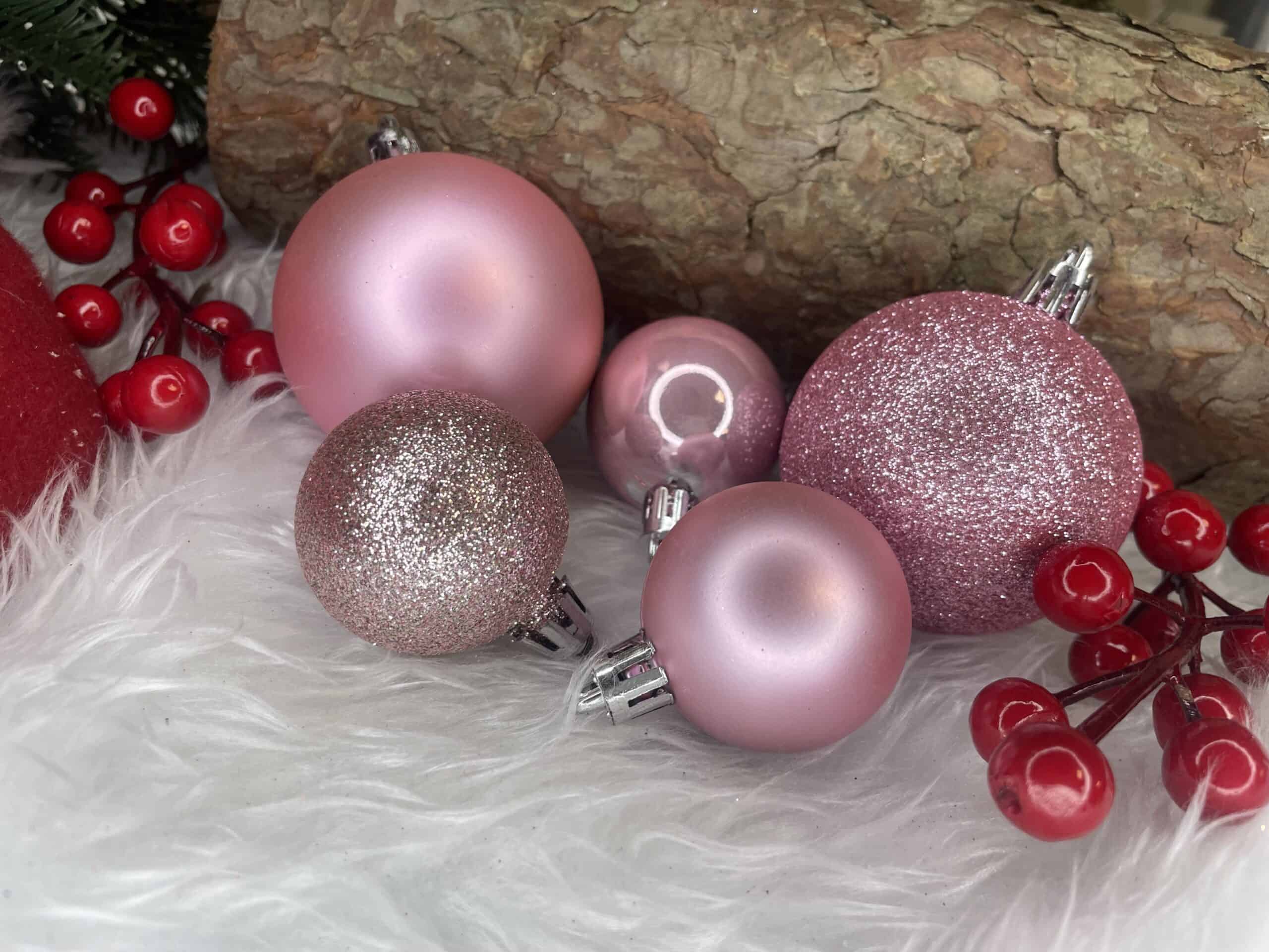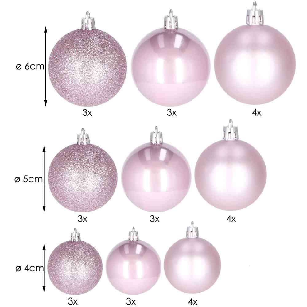 Set globuri de Craciun, 30 bucati, 3 modele, 4/5/6cm, roz Mob360