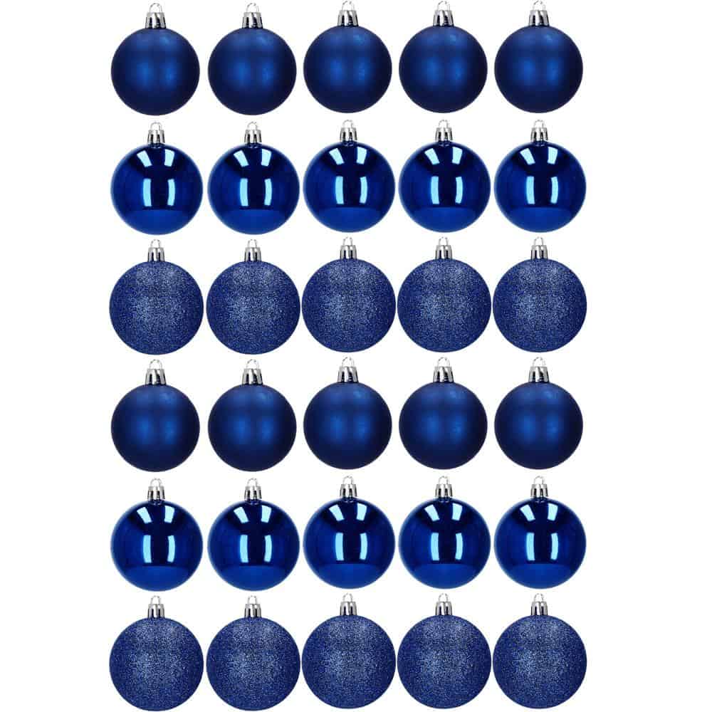 Set globuri de Craciun, 30 bucati, 3 modele, 6cm, albastru Mob360