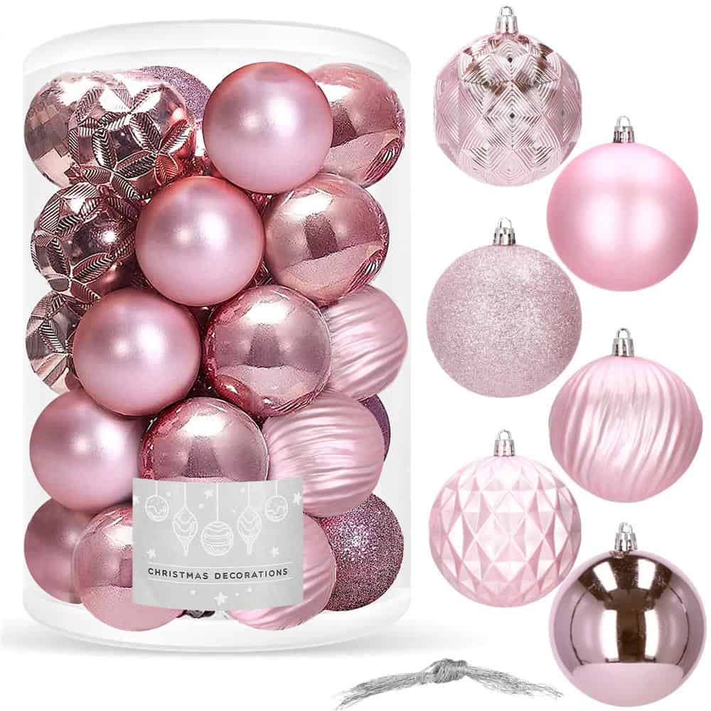 Set globuri de Craciun, 30 bucati, 6 modele, 8cm, roz Mob360