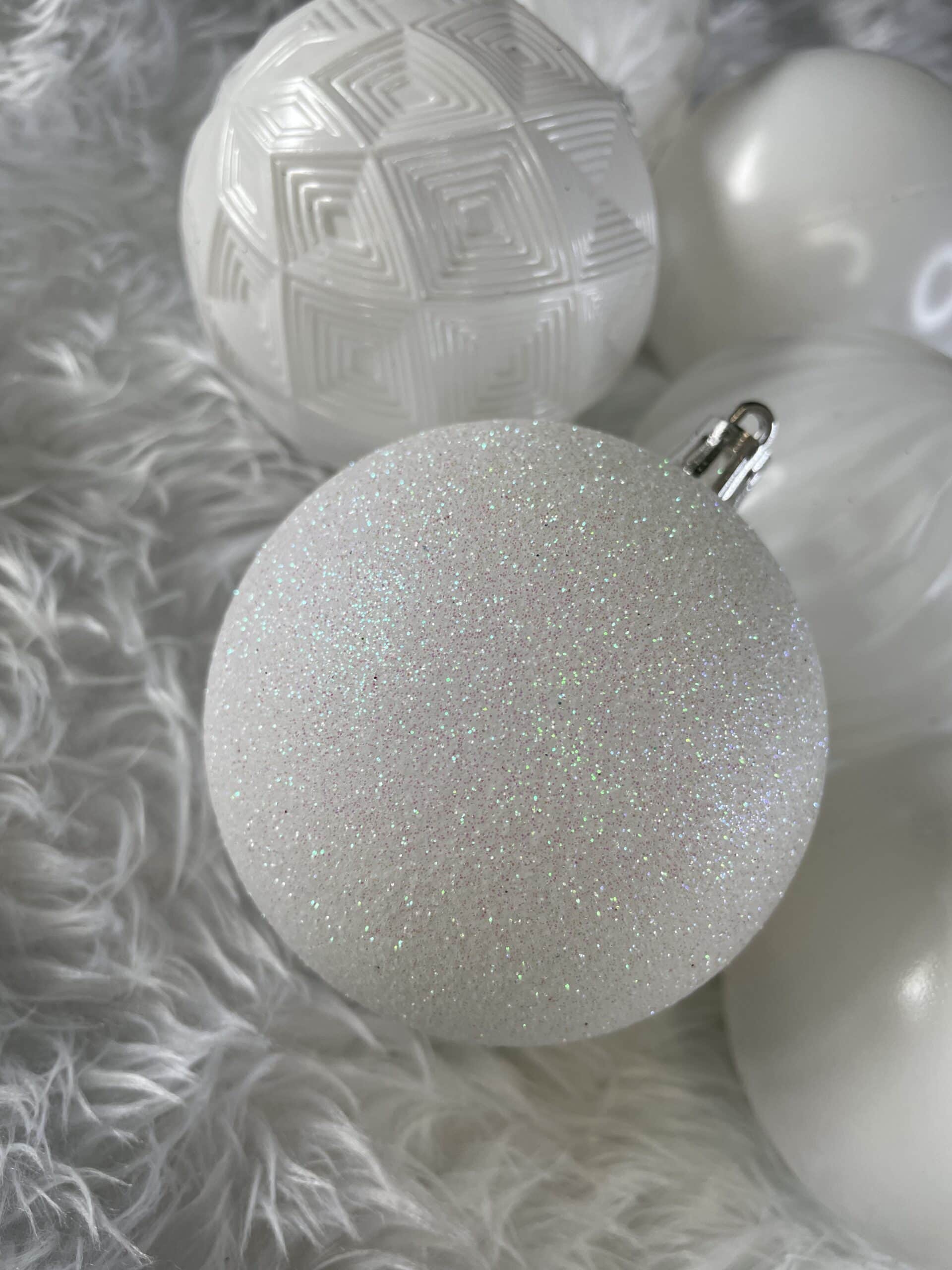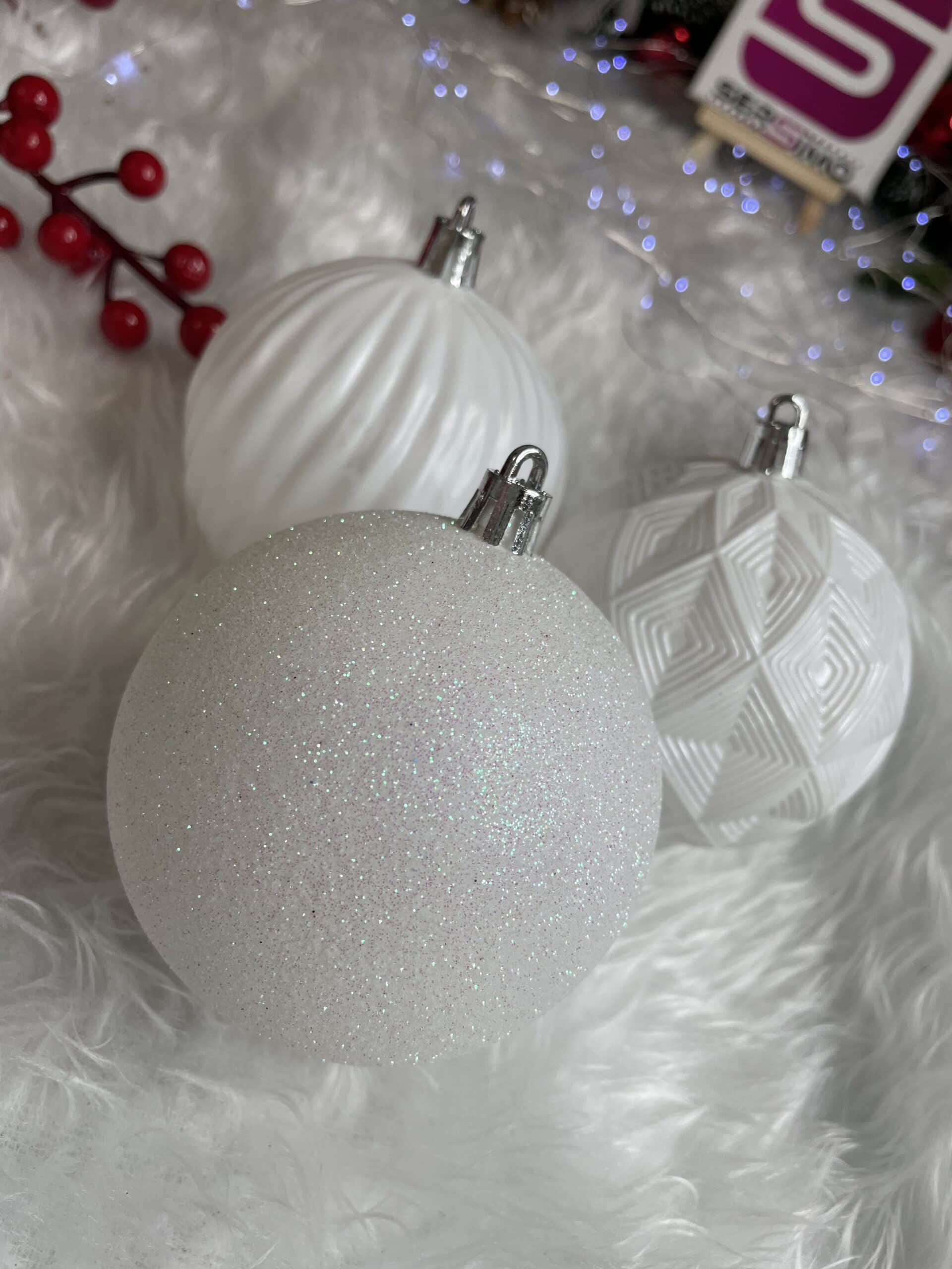 Set globuri de Craciun, 30 bucati, 8cm, 6 modele, alb Mob360