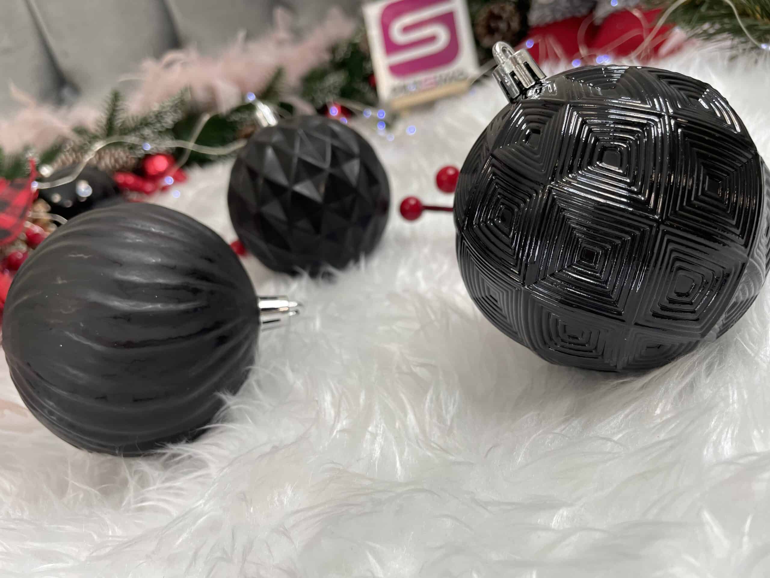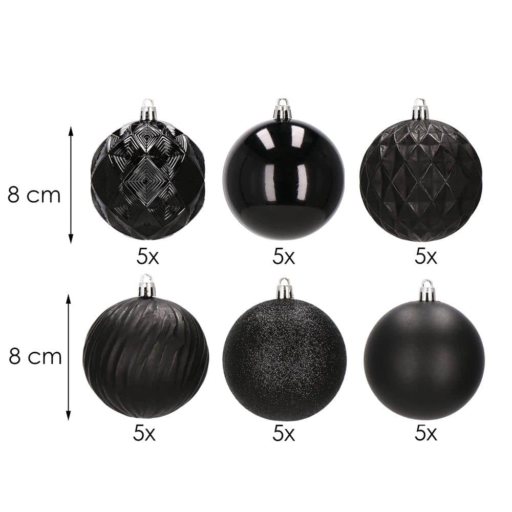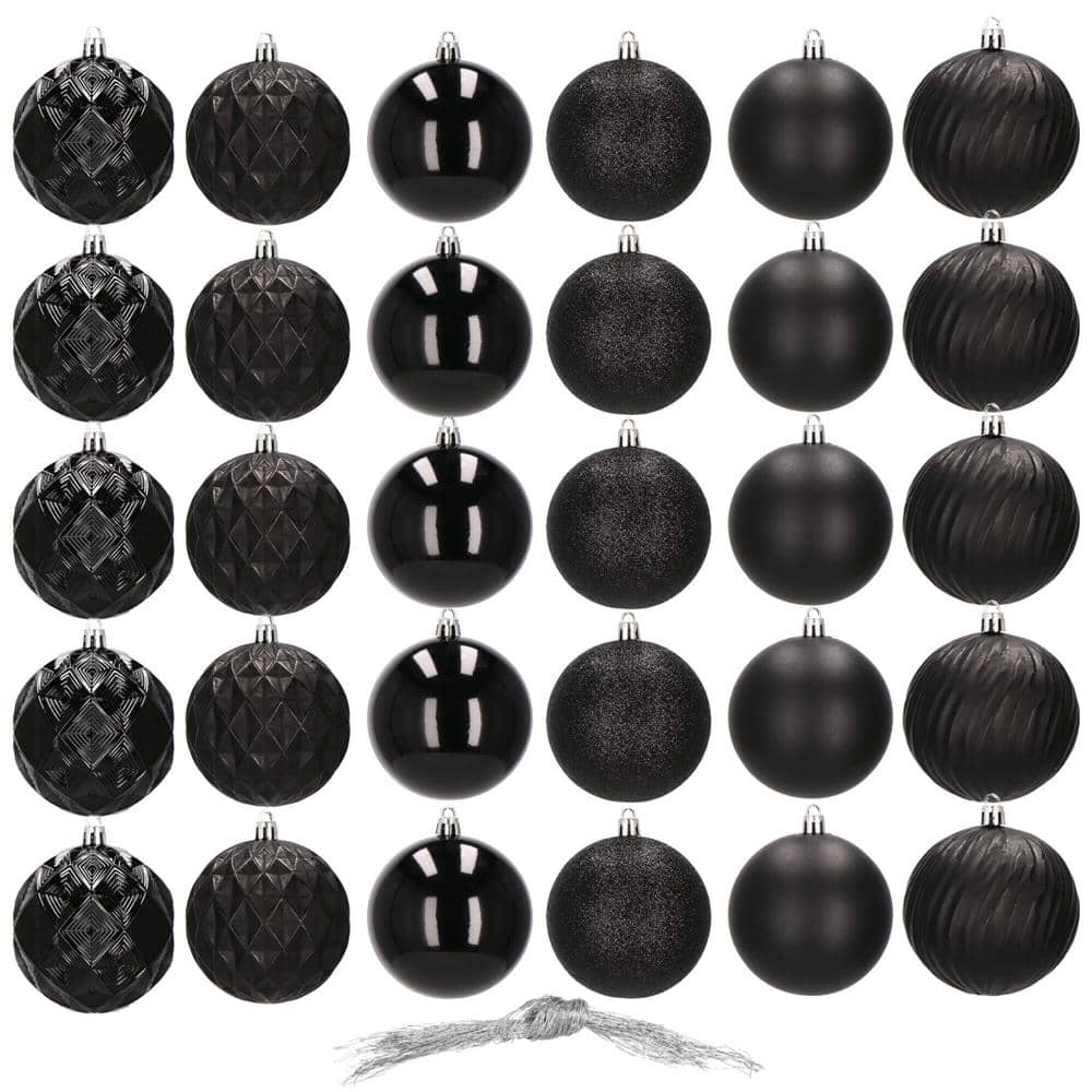 Set globuri de Craciun, 30 bucati, 8cm, 6 modele, negru Mob360