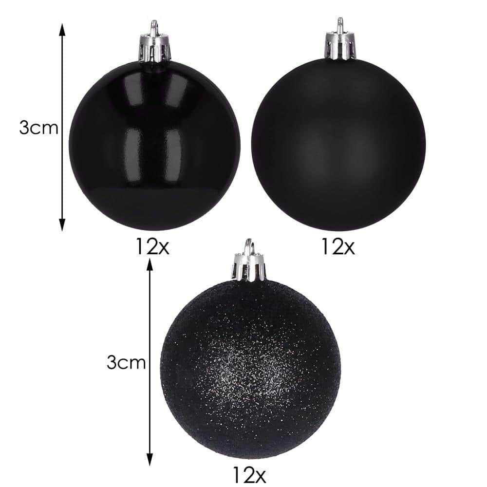 Set globuri de Craciun, 36 bucati, 3 modele, 3cm, negru Mob360