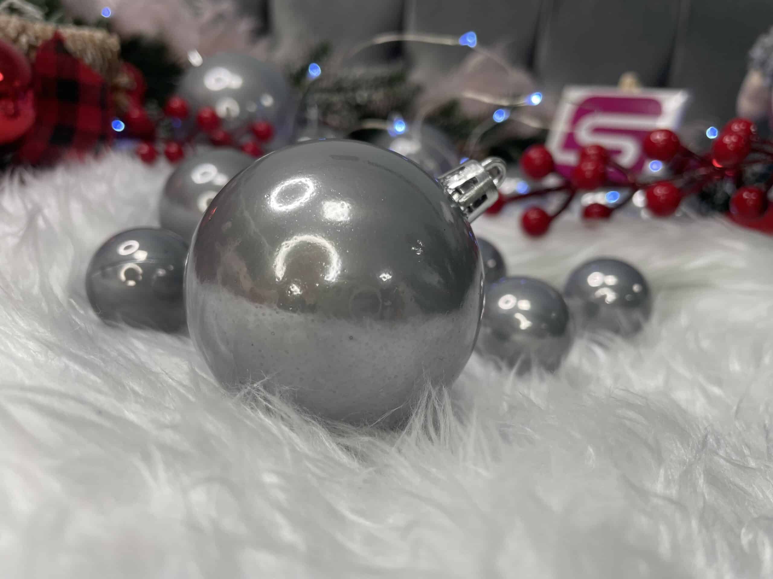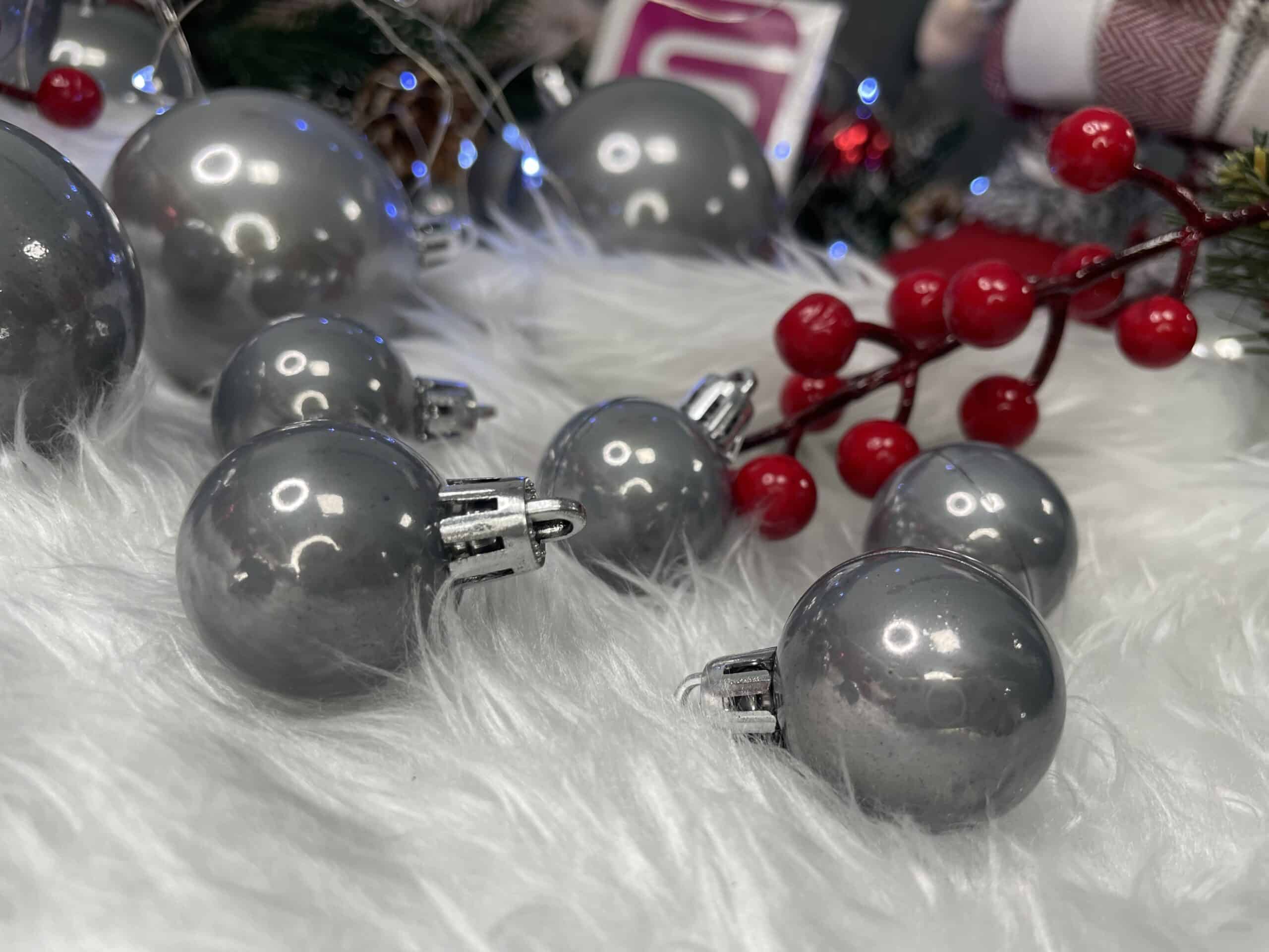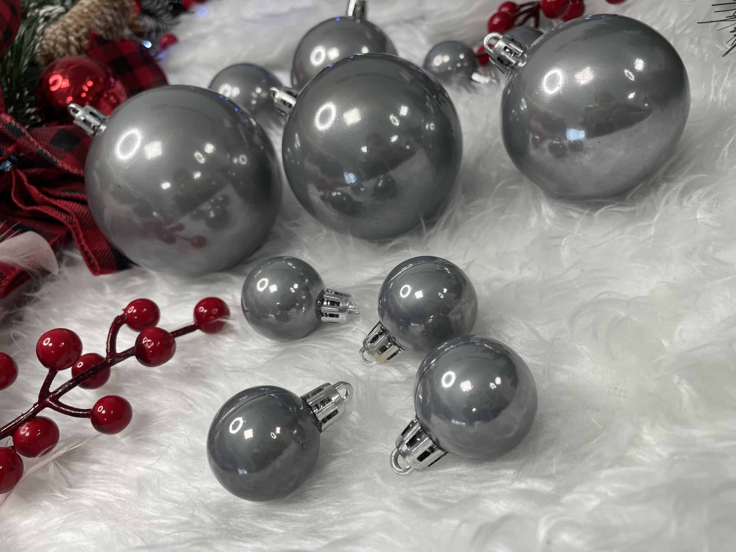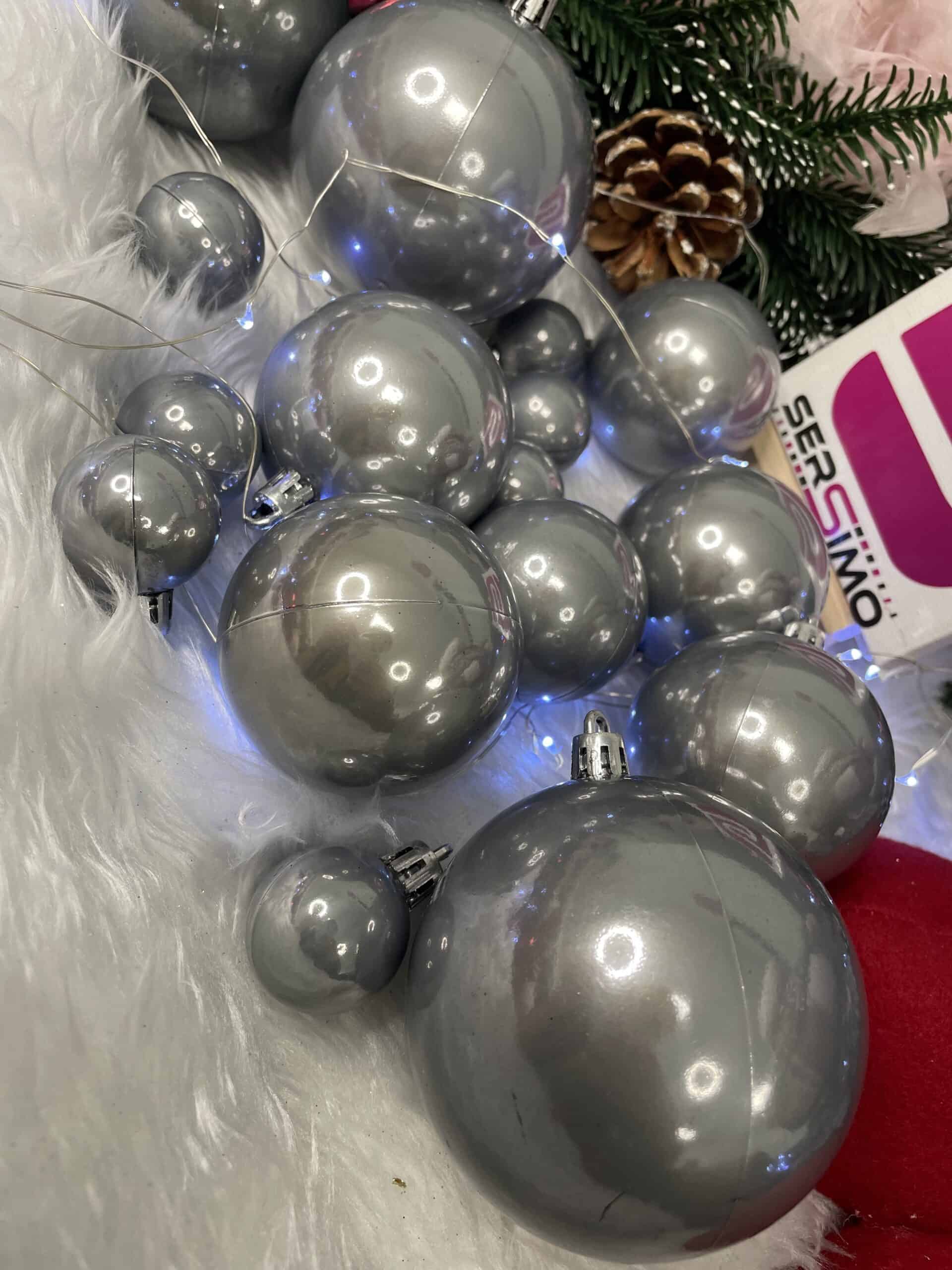 Globurile dintr-un set cu o singura culoare va vor permite sa creati un decor minunat pentru brad. Arata frumos in timpul zilei si dupa intuneric, insotite de iluminat festiv. Setul include snururi care va permit sa agatati globurile rapid si usor in locul dorit. Designul din plastic creste siguranta datorita materialului incasabil. Alegerea lor in locul globurilor de sticla va contribui la siguranta celor mici din casa. Diversele dimensiuni va permit sa creati modele inedite de aranjare a bradului de Craciun. Culoare: gri argintiu perla Material: plastic Cantitate: 37 bucati globuri (+/- 1 bucata) Setul include urmatoarele globuri Mini 10x – 3 cm Mic 10x – 5 cm Mediu 8x – 6 cm Mare 5x – 7 cm Maxi 4x – 8 cmAtentie! Numarul de piese din set poate varia + – 1 buc.
