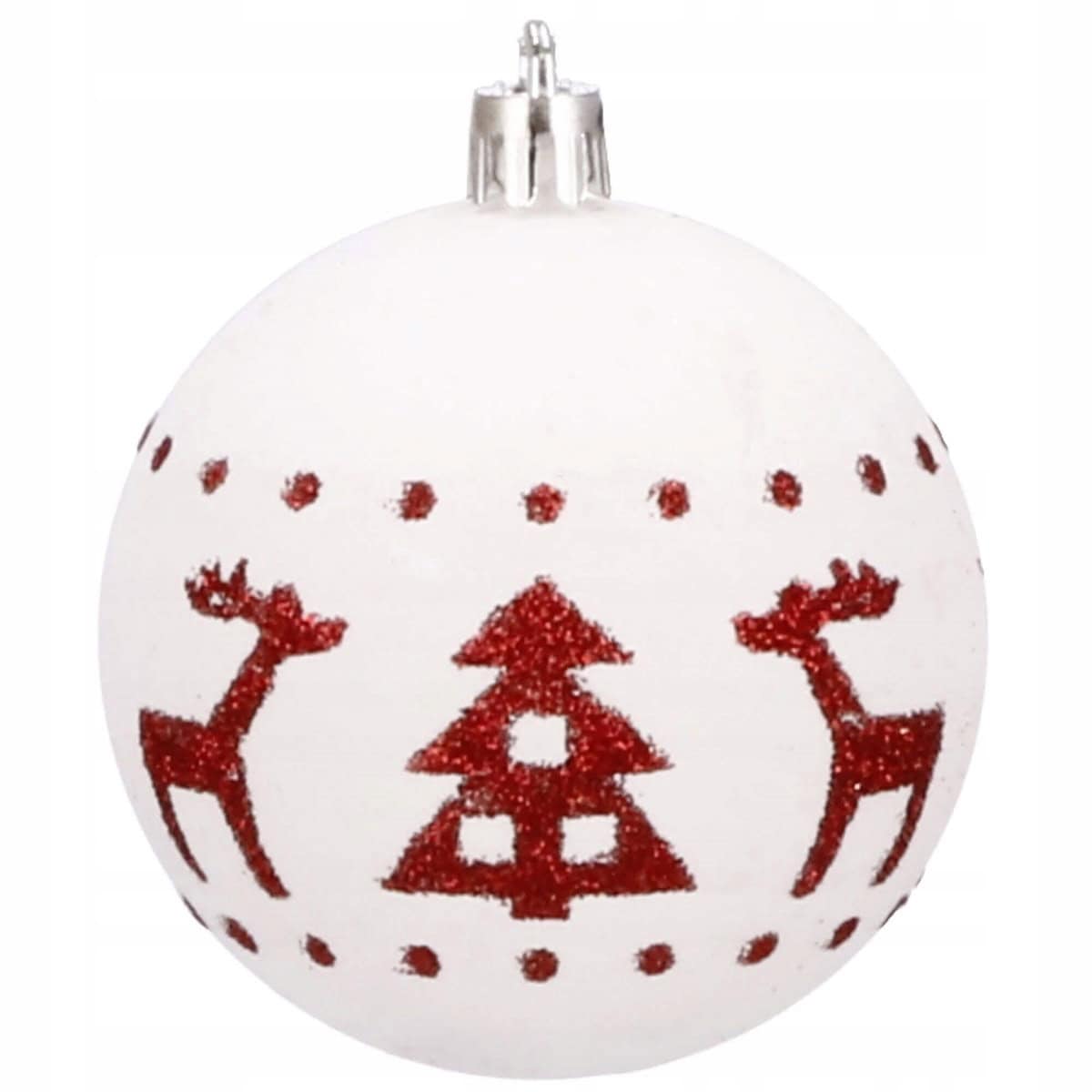 Set globuri de Craciun cu modele de sarbatori, 30 bucati, 5cm, alb rosu Mob360