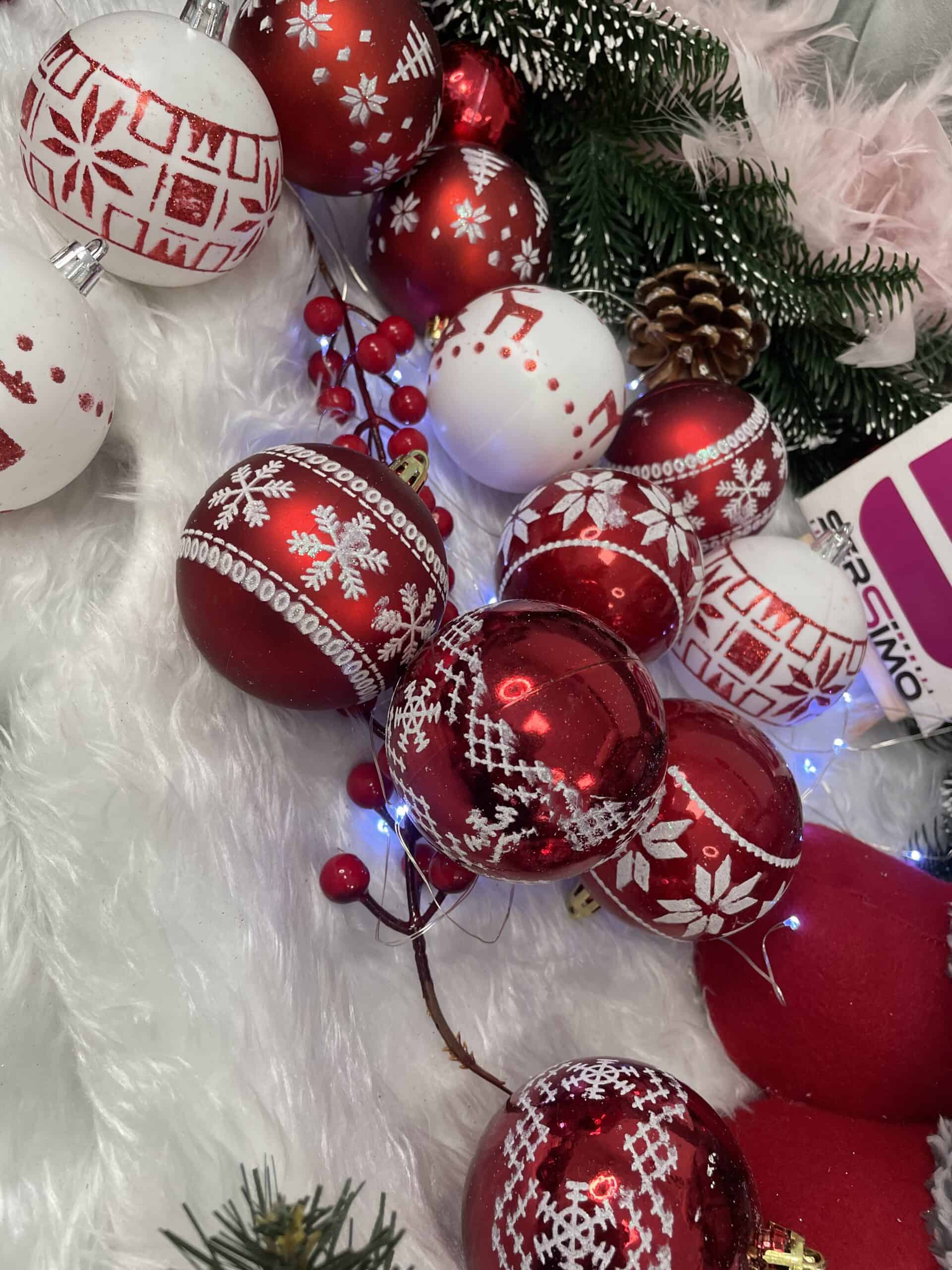 Set globuri de Craciun cu modele de sarbatori, 30 bucati, 5cm, alb rosu Mob360 – produs disponibil în magazinul Mob360.