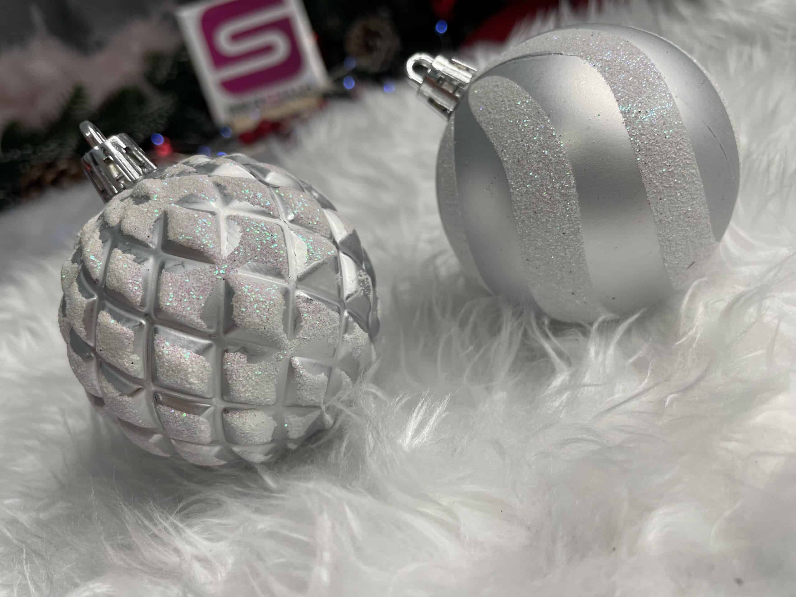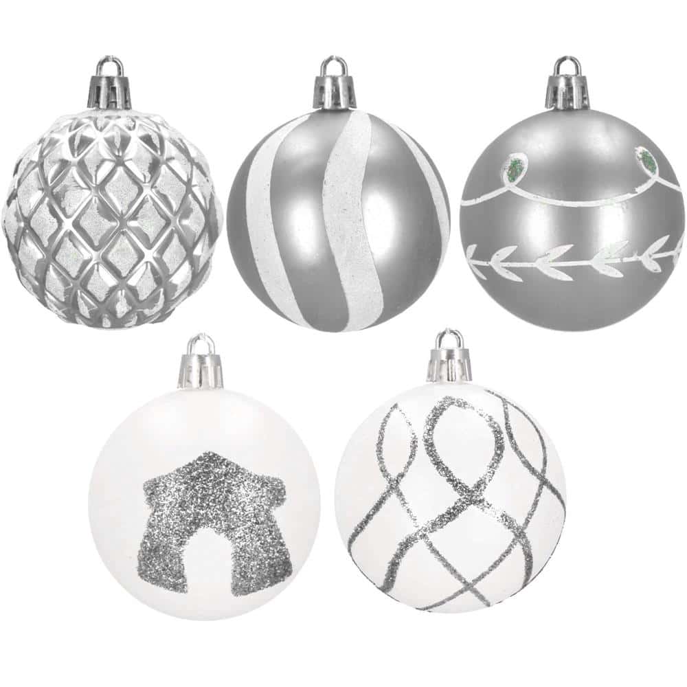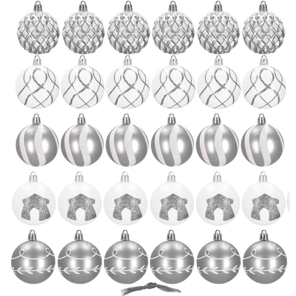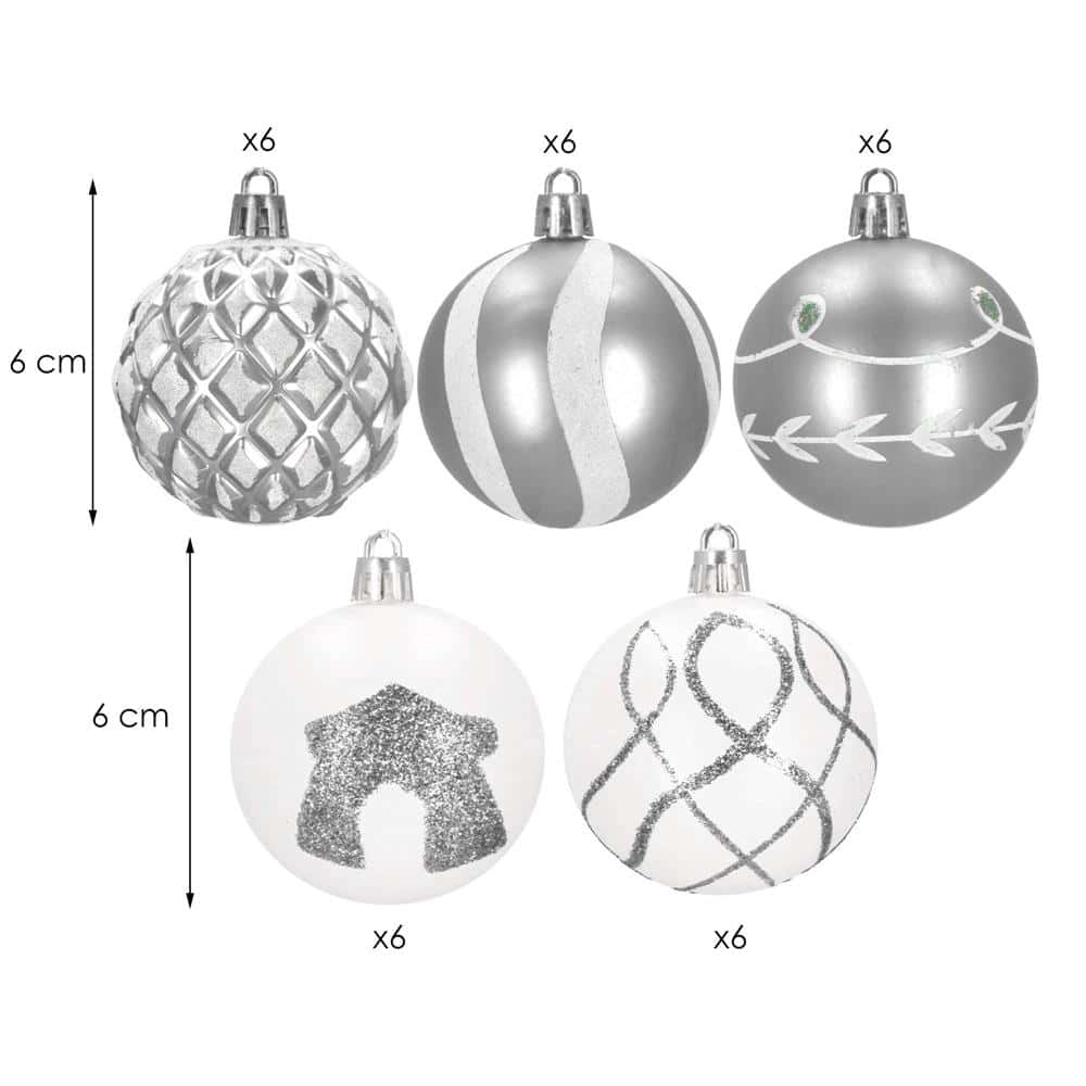Set globuri de Craciun cu modele de sarbatori, 30 bucati, 6cm, argintiu Mob360