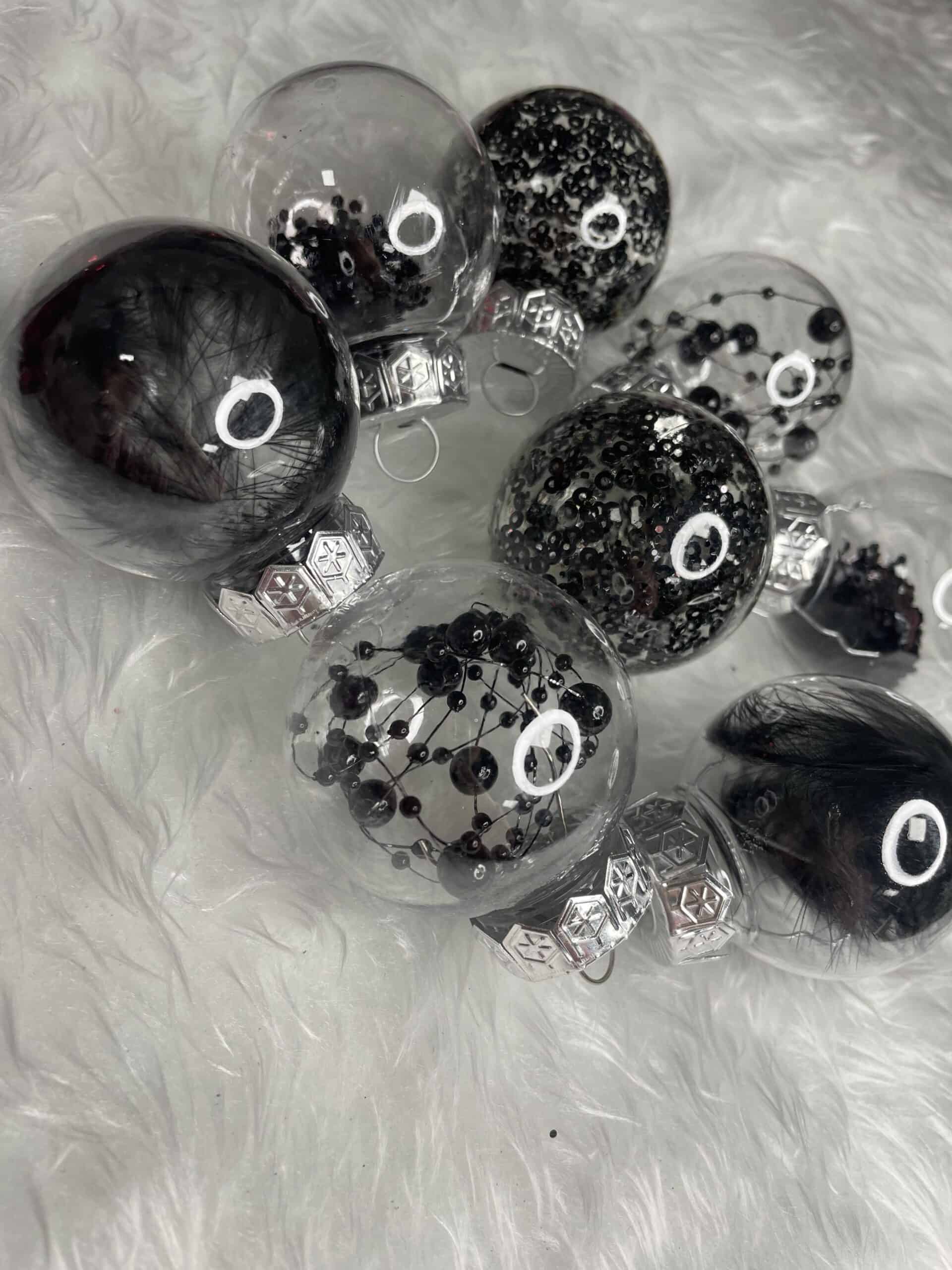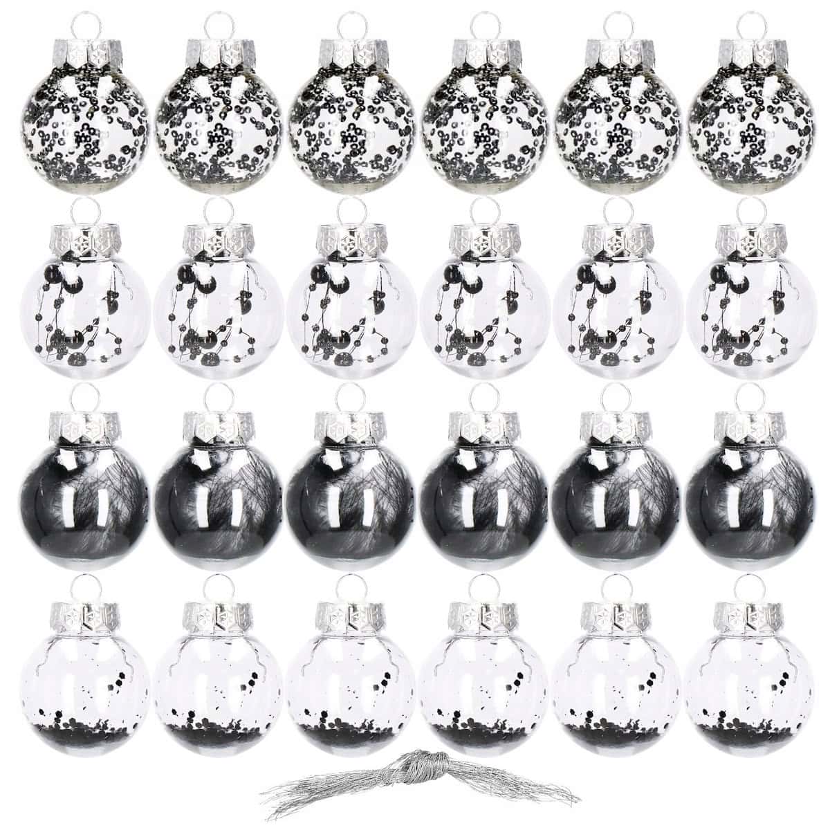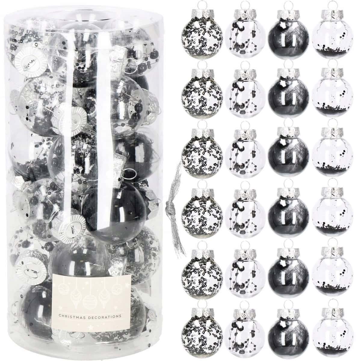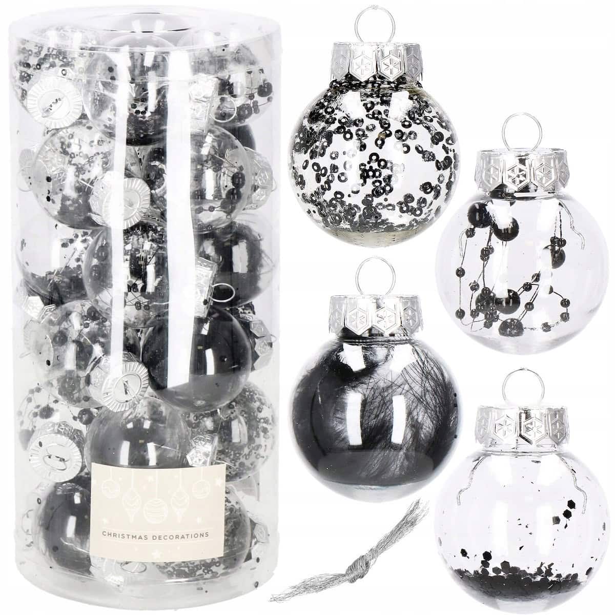 Set globuri de Craciun Inedit, 24 bucati, 5cm, transparente cu interior negru Mob360