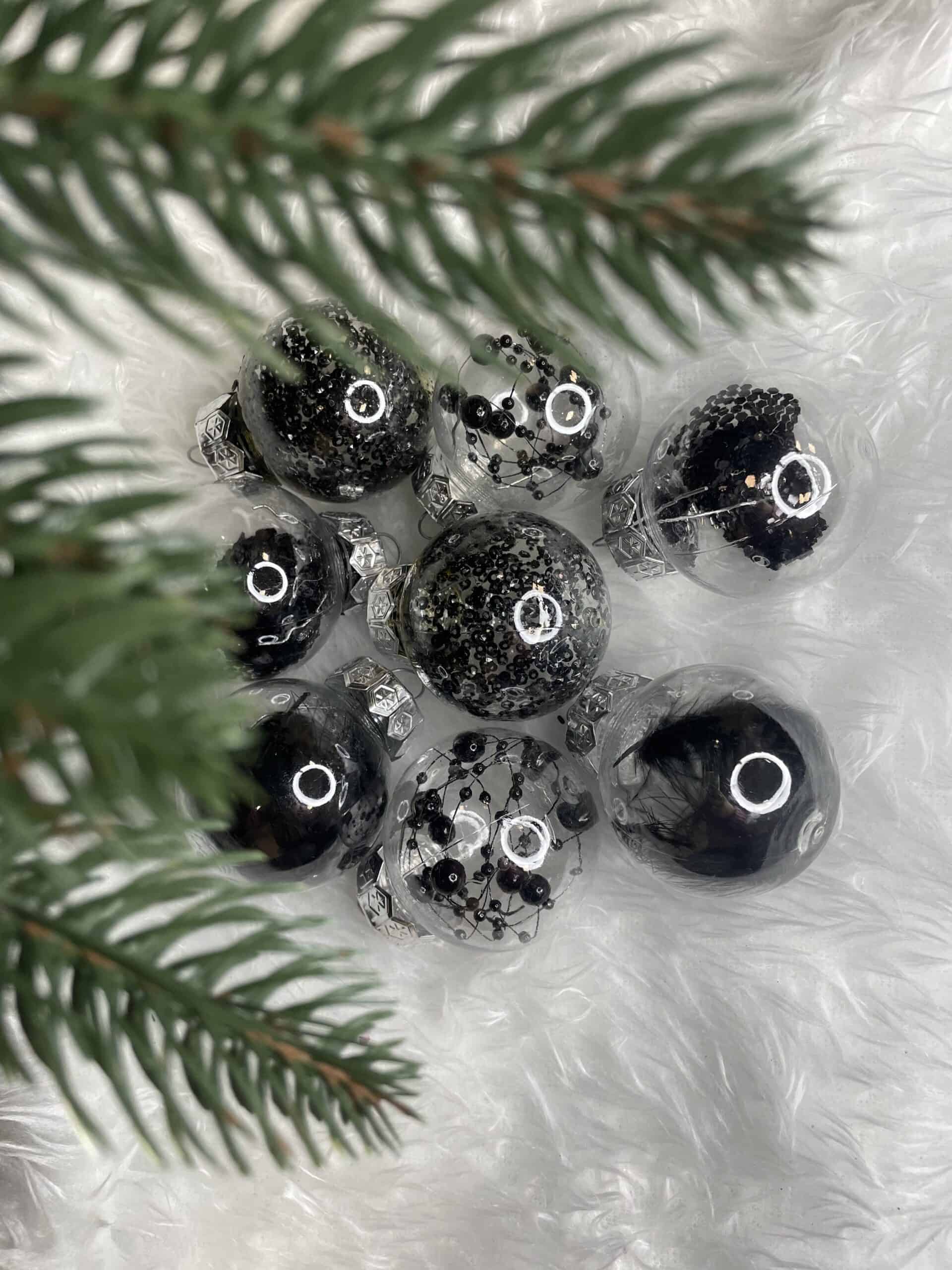 Set globuri de Craciun Inedit, 24 bucati, 5cm, transparente cu interior negru Mob360 – produs disponibil în magazinul Mob360.