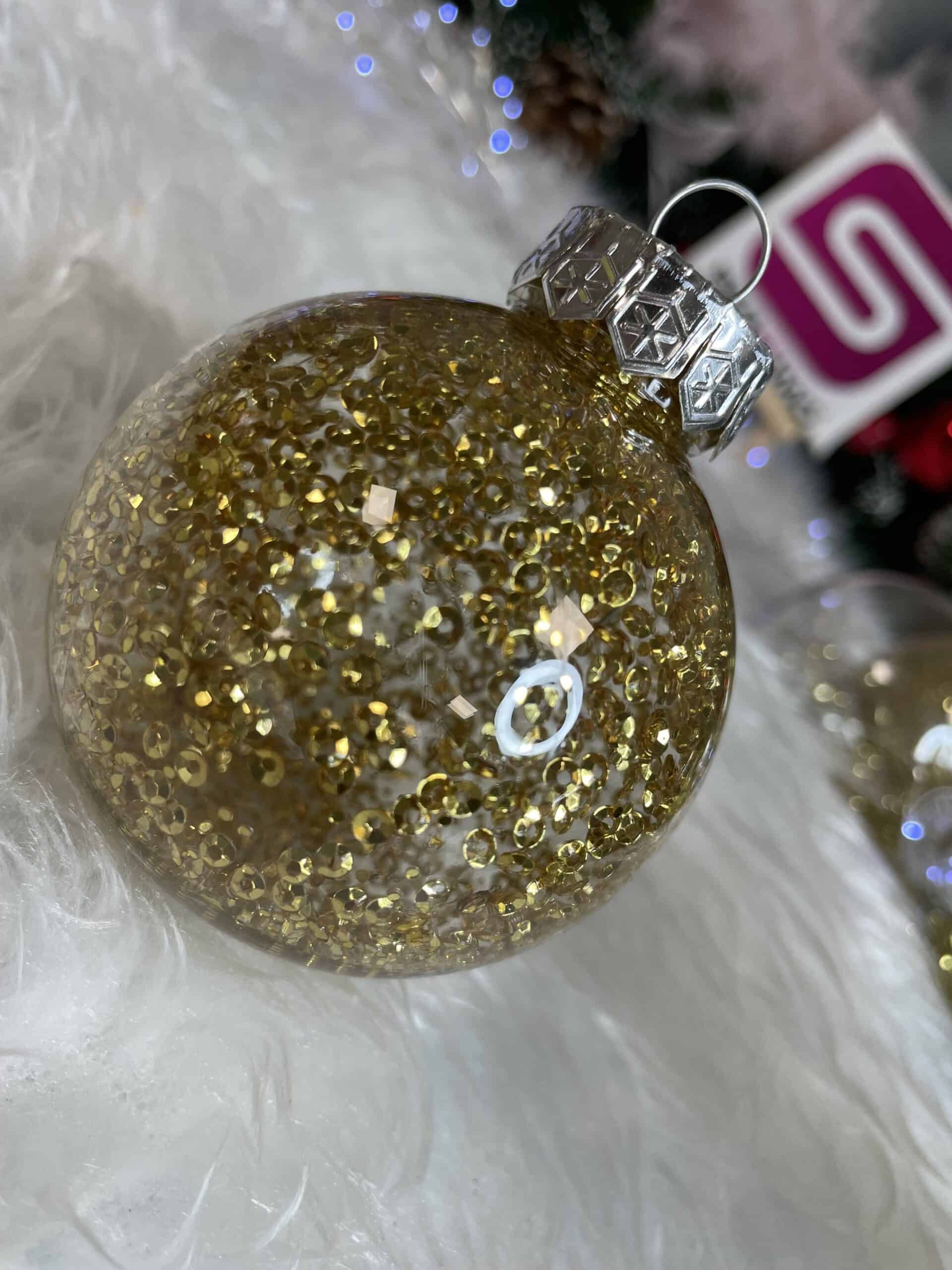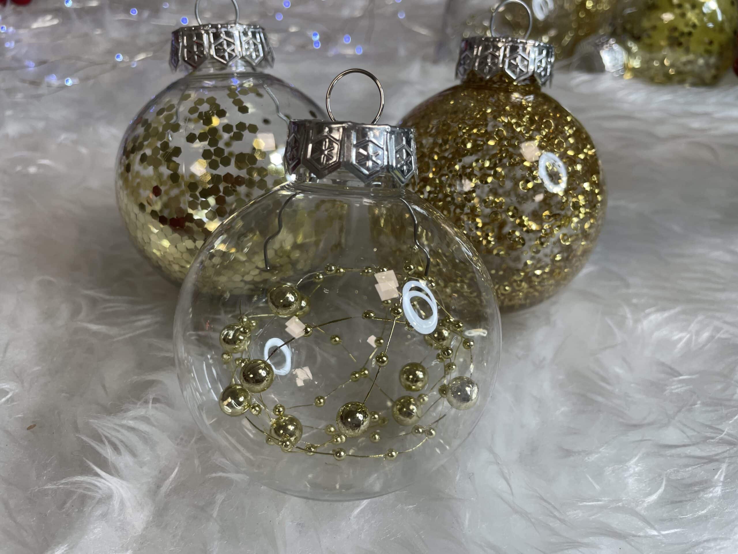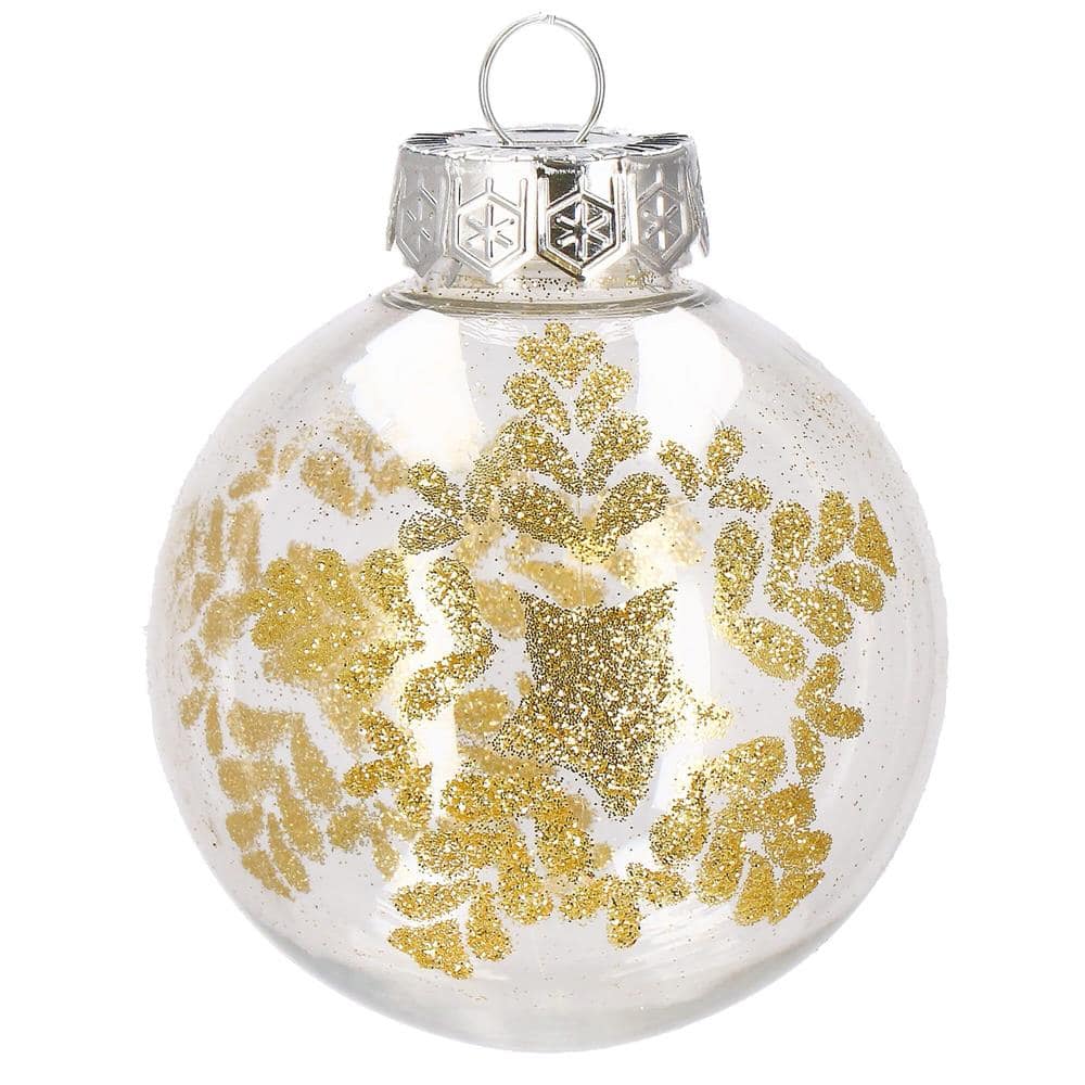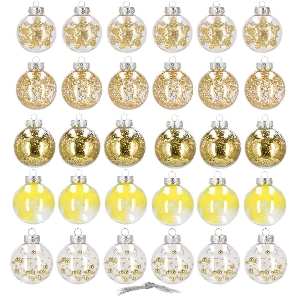 Set globuri de Craciun Inedit, 30 bucati, 7cm, transparente si auriu Mob360