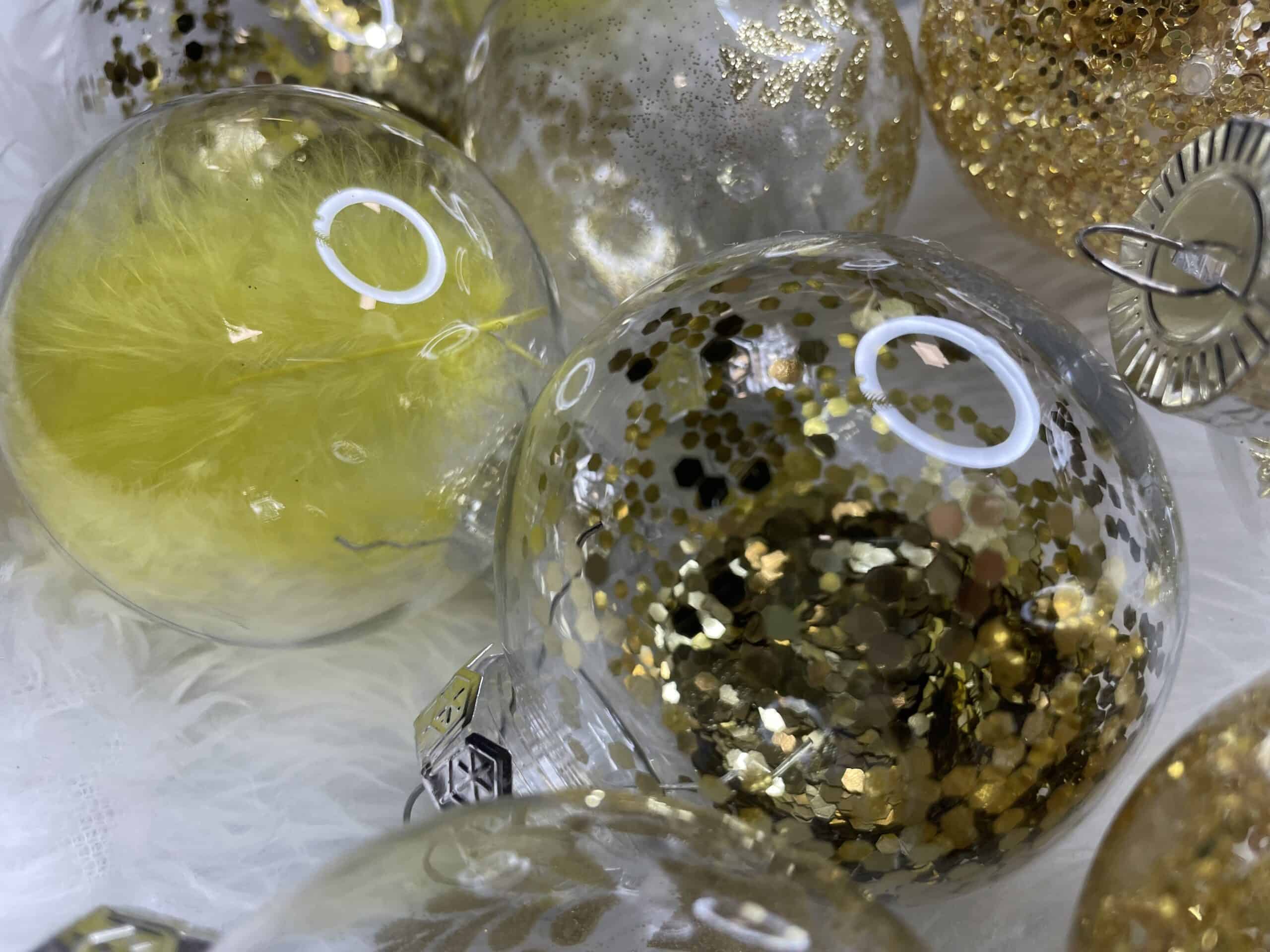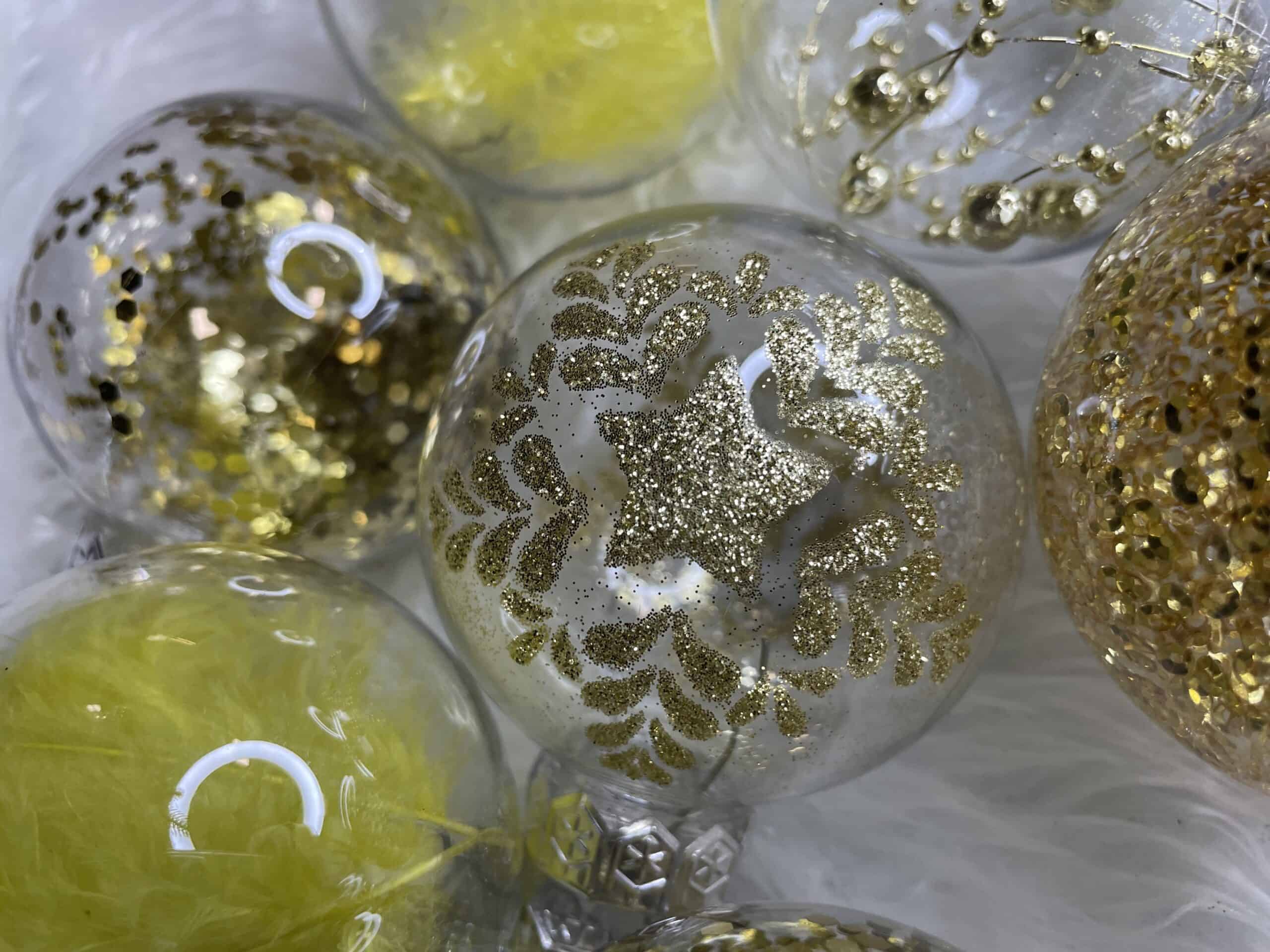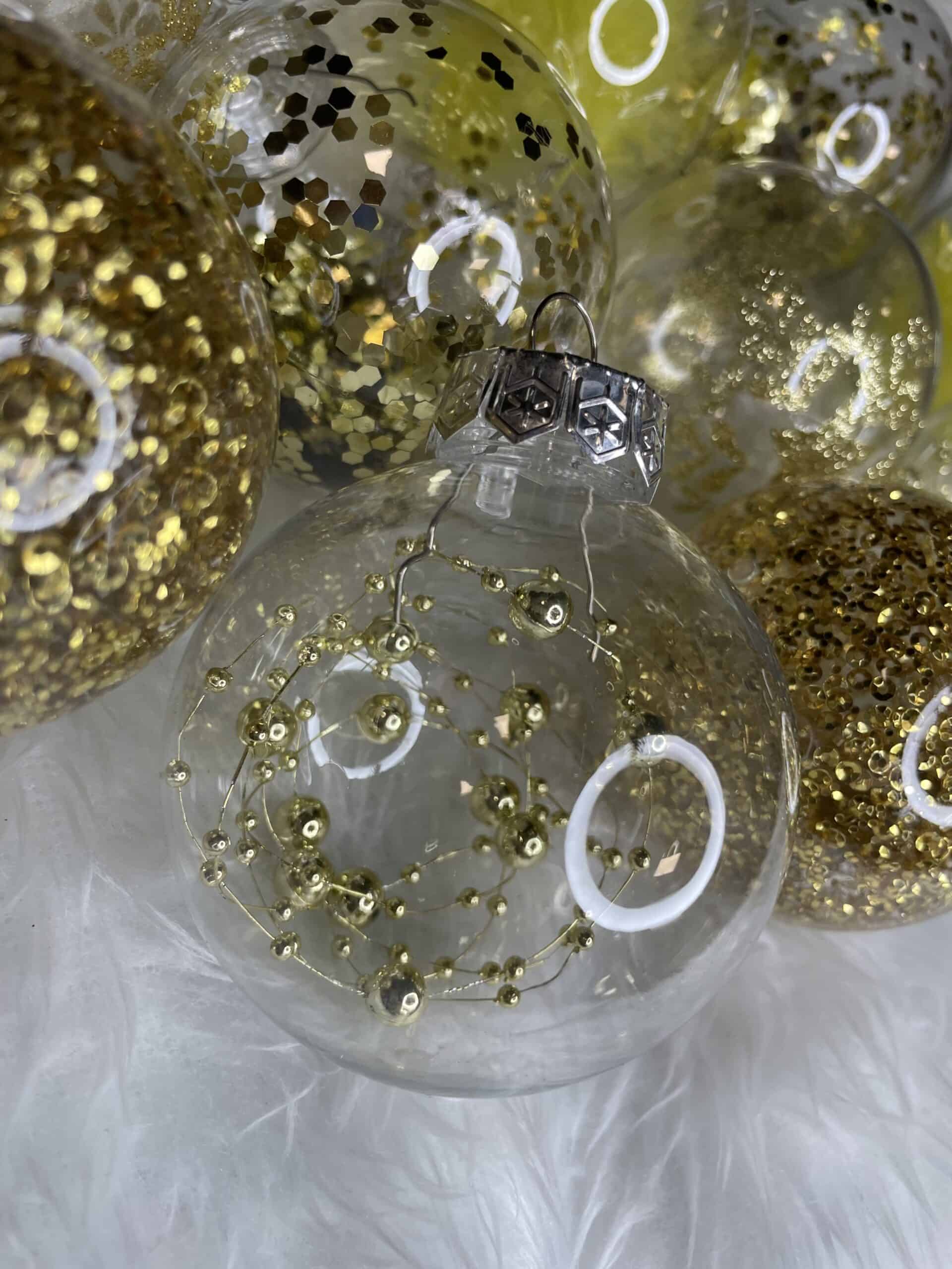 Set globuri de Craciun Inedit, 30 bucati, 7cm, transparente si auriu Mob360