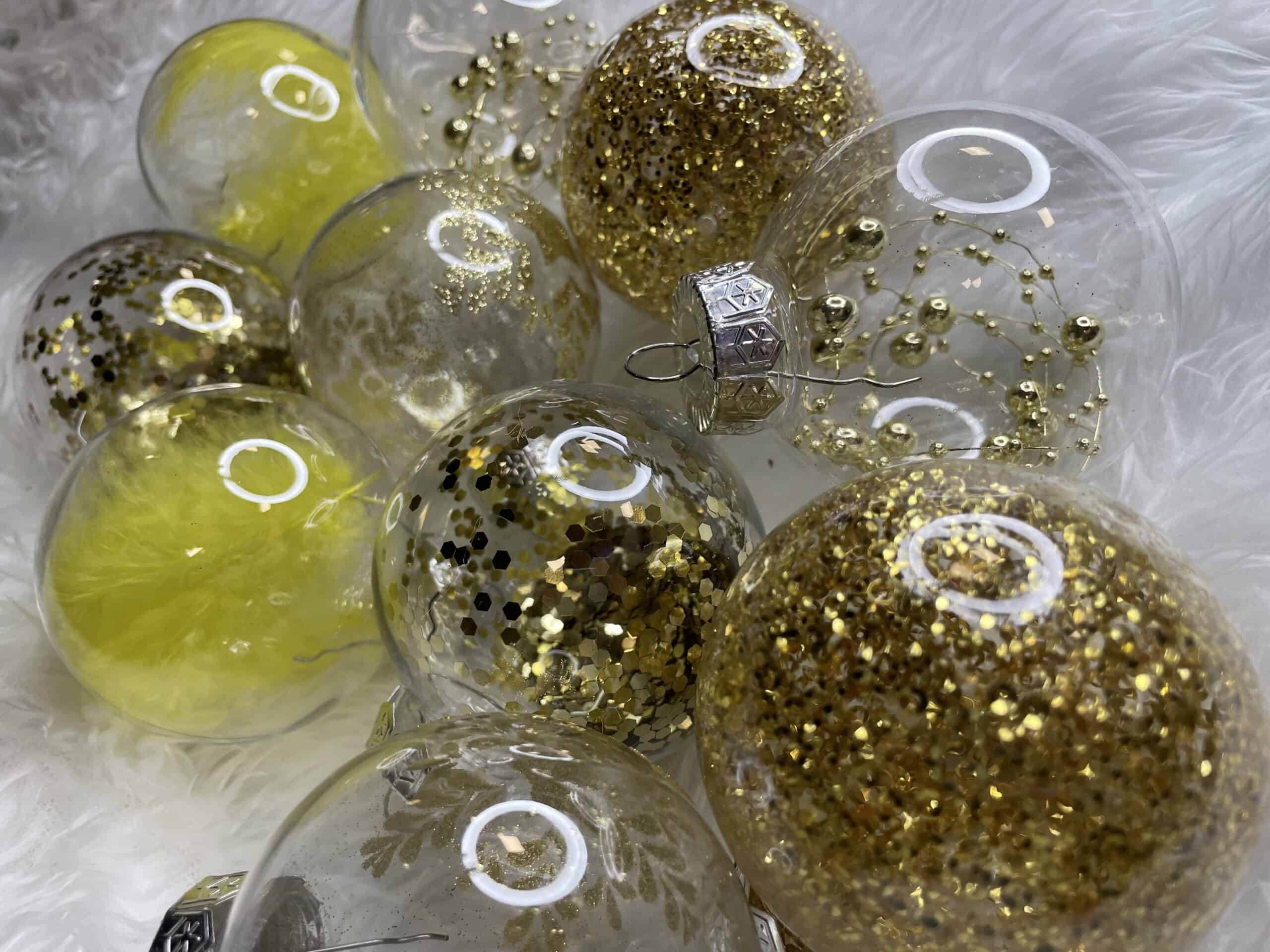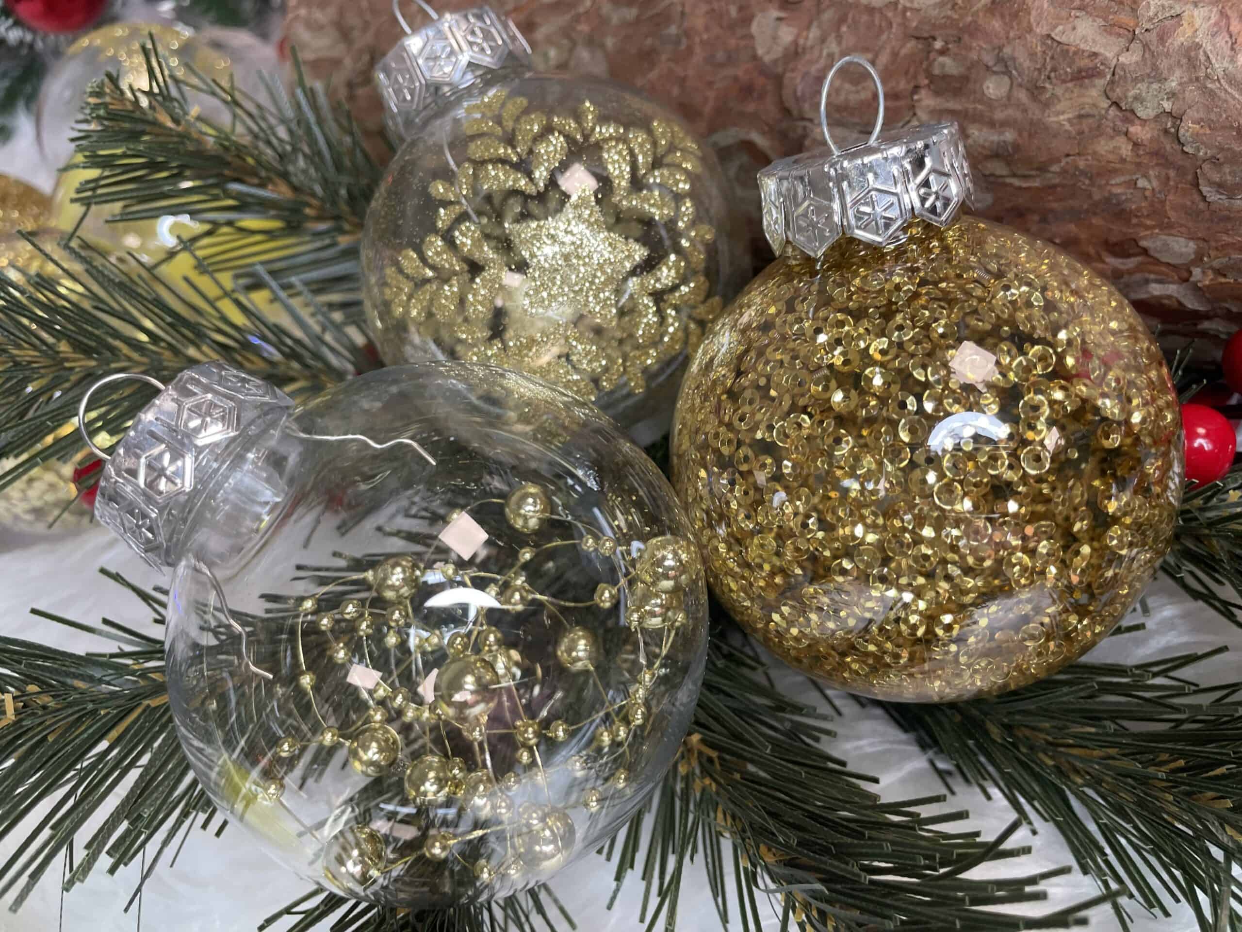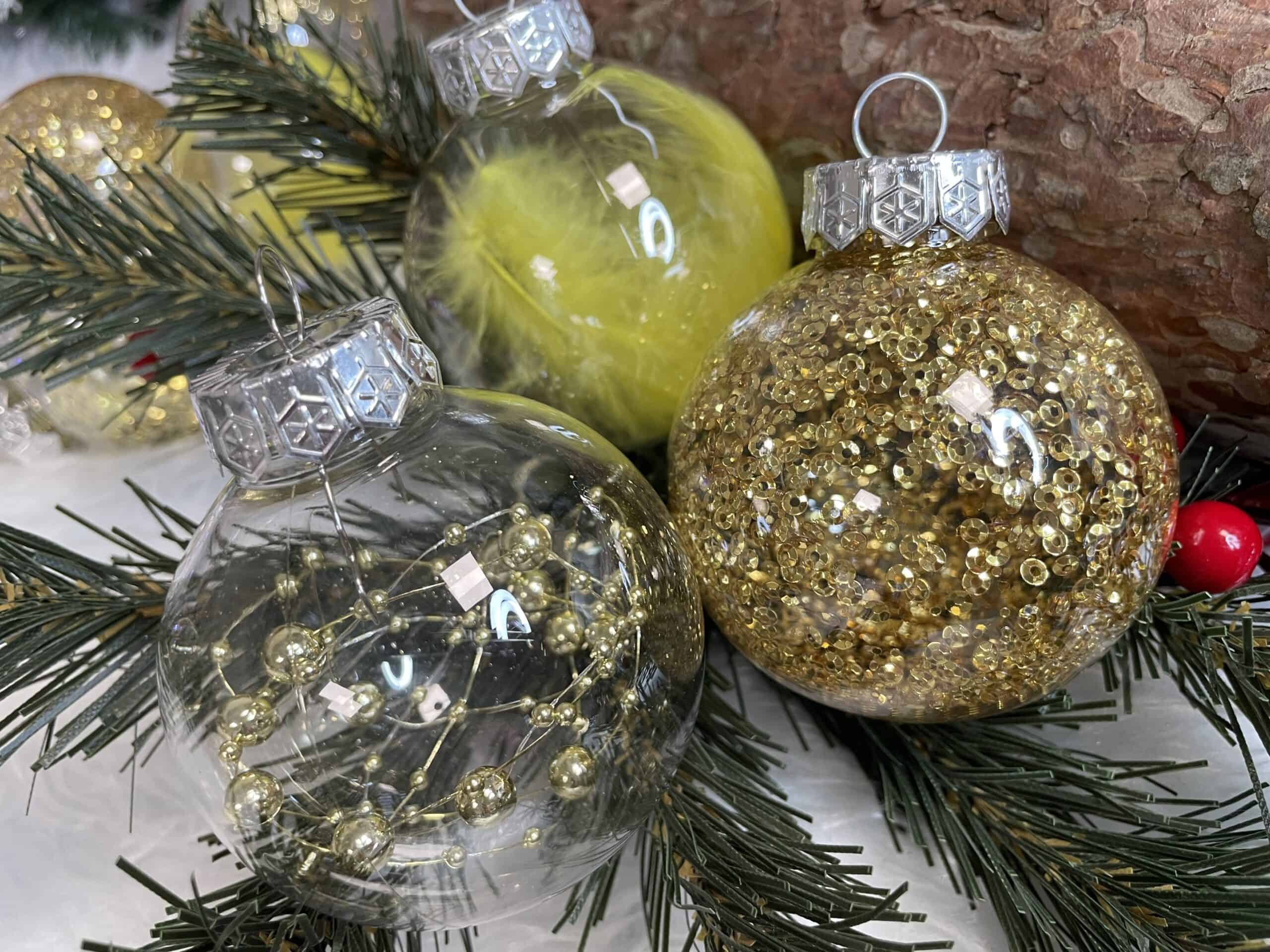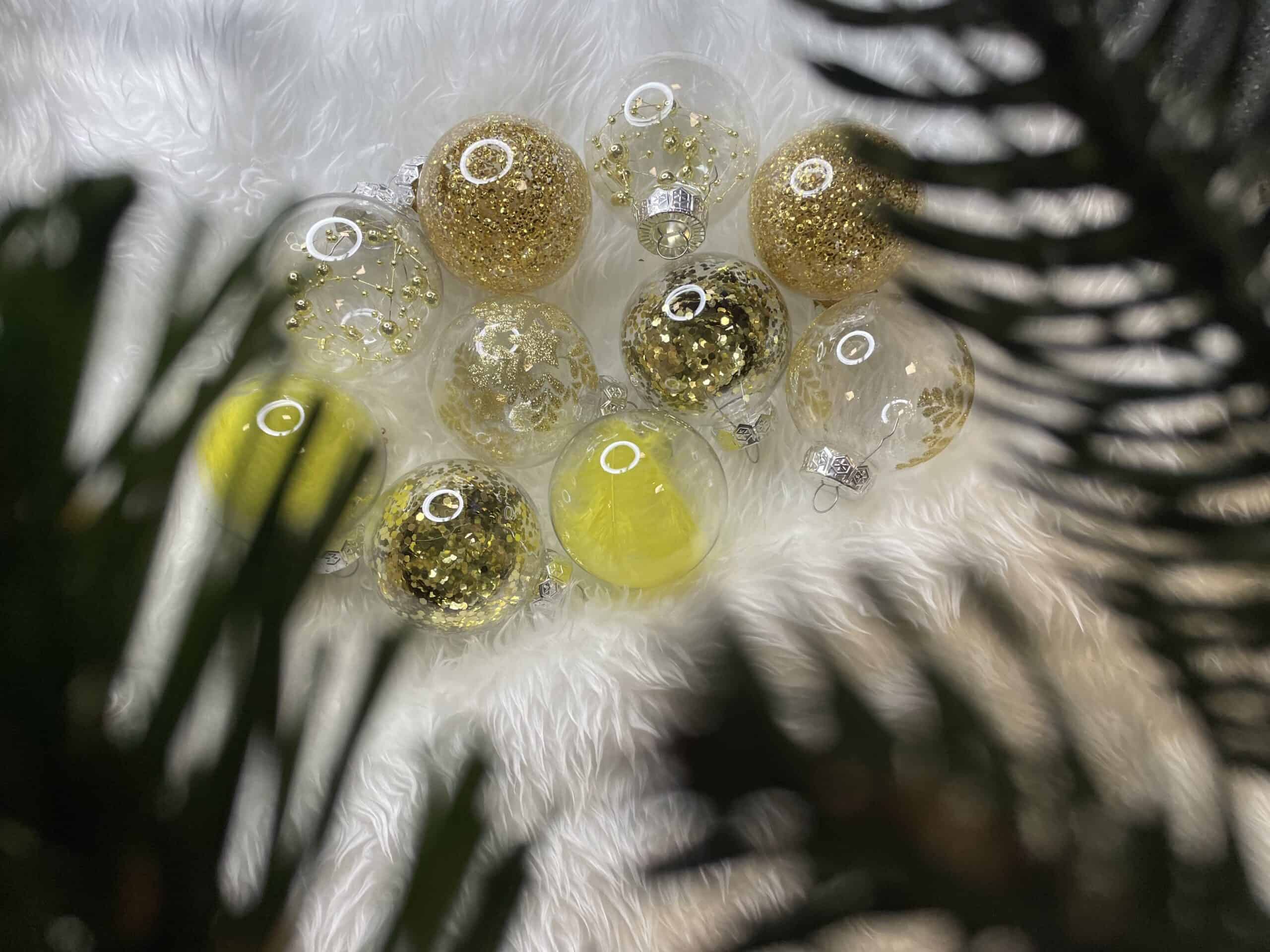 Set globuri de Craciun Inedit, 30 bucati, 7cm, transparente si auriu Mob360