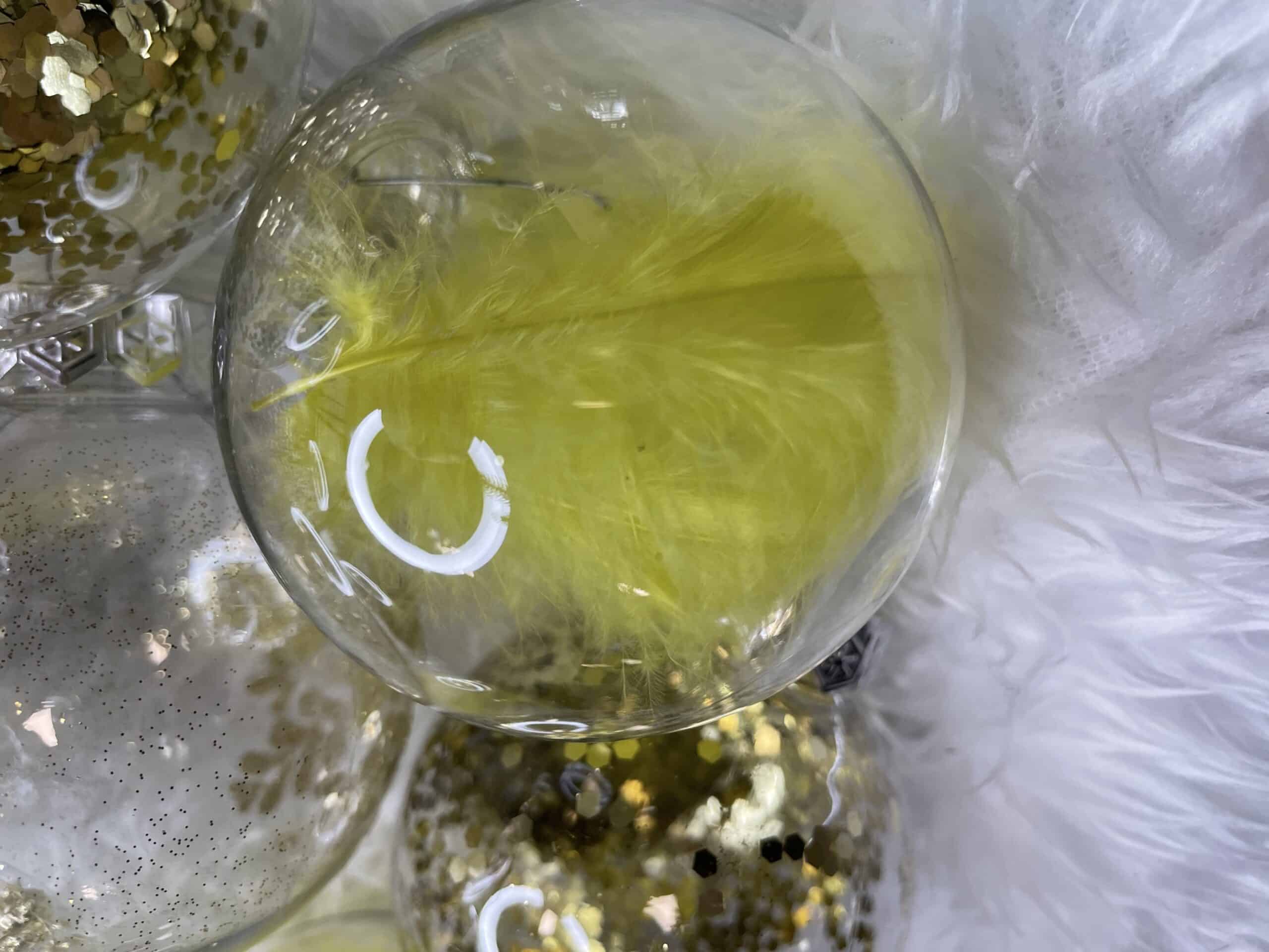 - Incasabil, snur pentru agatare Setul contine: 6x globuri cu pene 6x globuri cu margele de aur 6x globuri cu model fulg de nea 6x globuri cu confetti aurii 6x globuri cu paiete aurii