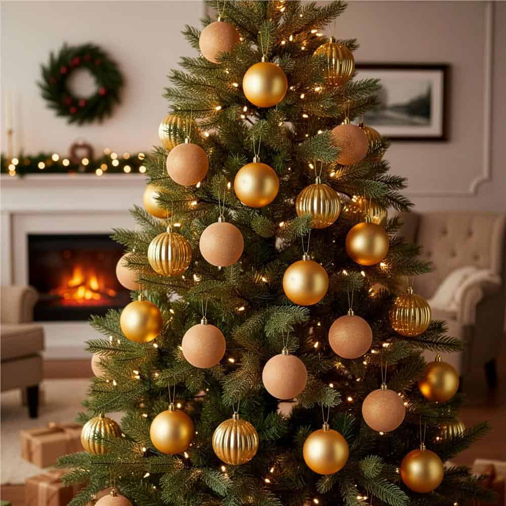 Specificatii tehnice Material: plastic Culoare: auriu, ecru Numar bucati: 36 Finisaj: semimat / lucios / catifelat Caracteristici: durabile si sigure Agatare: snururi incluse Inaltime cu agatatoare: 8 cm Diametru glob: 6.5 cm Scurta descriere Set format din 36 globuri decorative din plastic rezistent, in nuante elegante de auriu si ecru. Globurile includ finisaje variate – lucios, semimat, catifelat si spiralat – oferind un aspect bogat si armonios pentru decorul de sarbatori. Sunt durabile si sigure, ideale pentru brad, coronite sau aranjamente festive. Caracteristici principale Set de 36 globuri decorative Material plastic durabil si sigur Finisaj lucios, semimat, catifelat si spiralat Culori elegante auriu si ecru Snururi pentru agatare incluse Diametru 6.5 cm, dimensiune clasica pentru brad Potrivite pentru brad, decoratiuni si aranjamente de Craciun