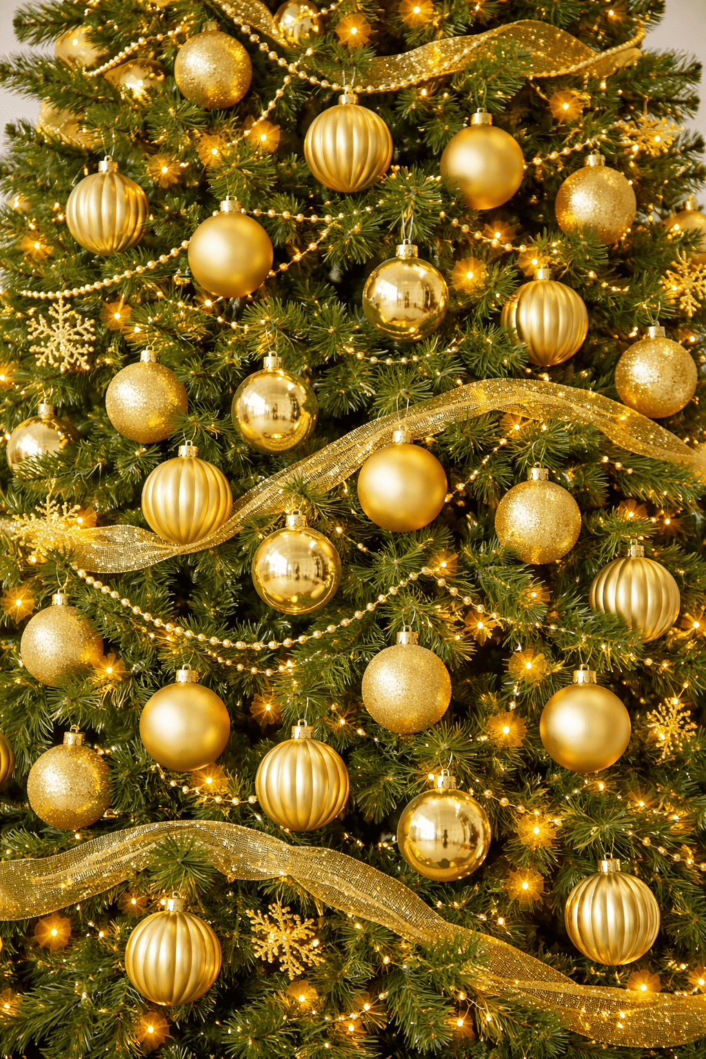 Set globuri decorative, 36 bucati, plastic, 6.5 cm, auriu si ecru Mob360
