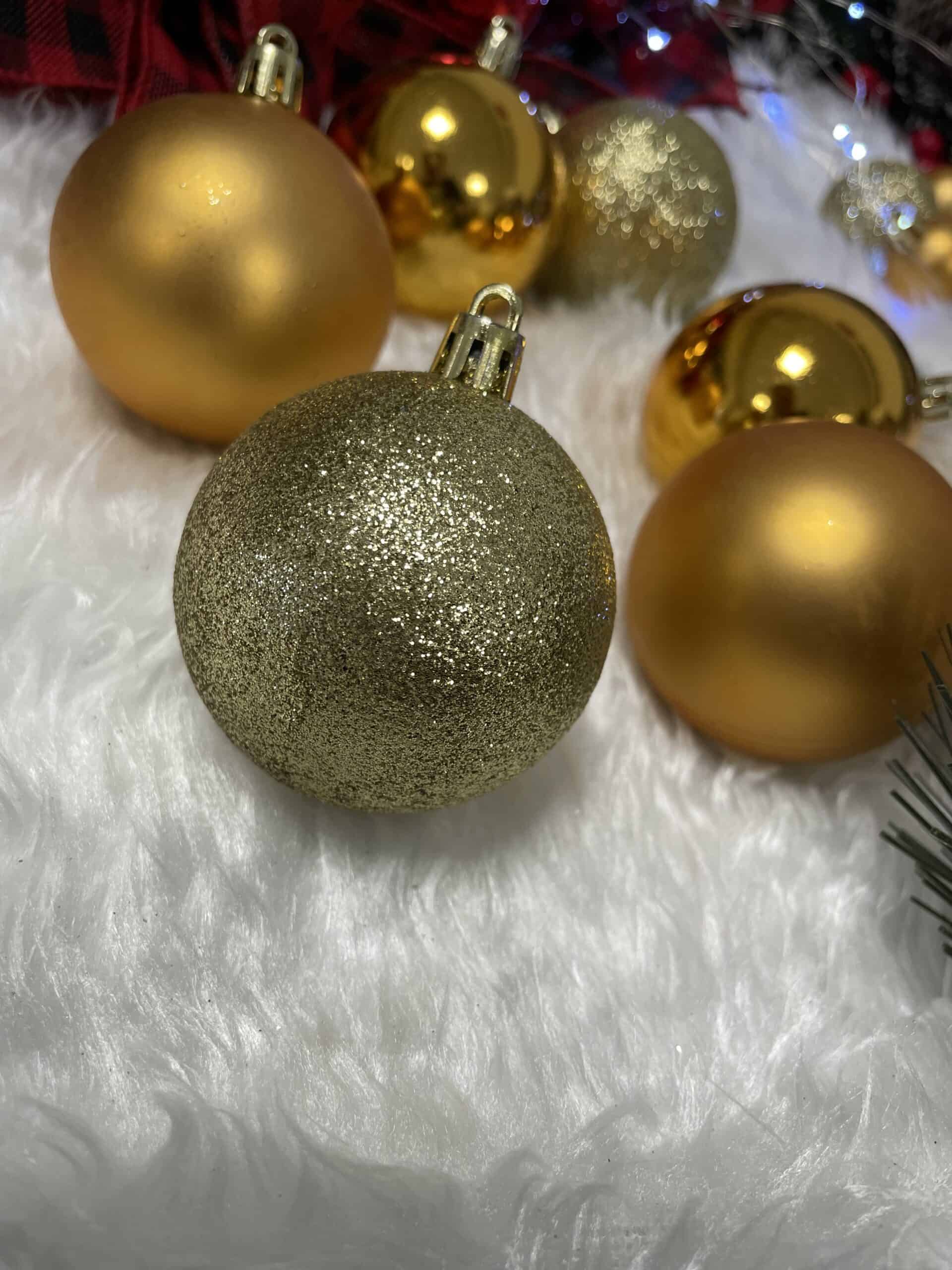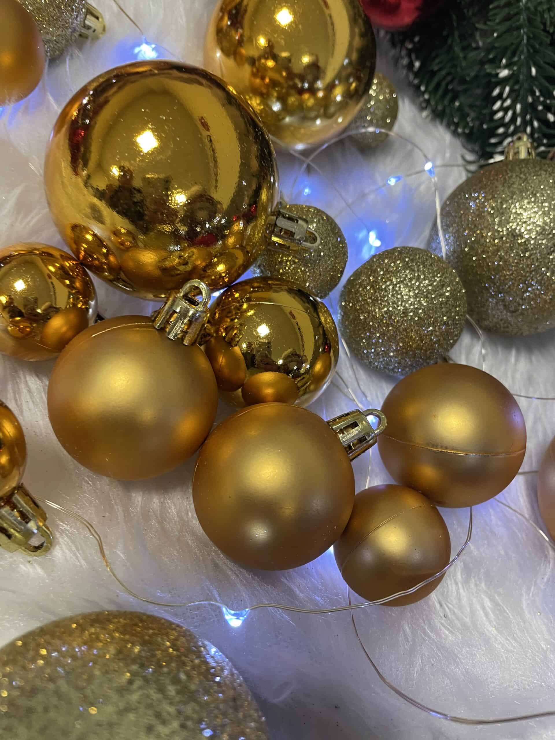 Globurile si decoratiunile dintr-un set cu o singura culoare va vor permite sa creati un decor minunat pentru brad. Arata frumos in timpul zilei si dupa intuneric, insotite de iluminat festiv. Setul include snururi care va permit sa agatati globurile rapid si usor in locul dorit. Designul din plastic creste siguranta datorita materialului incasabil. Alegerea lor in locul globurilor de sticla va contribui la siguranta celor mici din casa. Diversele dimensiuni va permit sa creati modele inedite de aranjare a bradului de Craciun. Culoare: auriu Material: plastic Cantitate: 100 piese Modele: modele diferite incluse in set Diametru: diverse marimi Setul include urmatoarele piese 1 buc stea pe varf de aproximativ 20 cm 8 bucati de balouri ajurate de 6 cm 8 bucati de balouri stralucitoare de 6 cm 8 bucati cu sclipici de 6 cm 8 bucati de balouri mate de 6 cm 12 bucati de bulgari stralucitoare de 4 cm 12 bucati de sclipici de 4 cm 12 bucati de bulgari mate de 4 cm 8 bucati de bulele stralucitoare de 3 cm 16 bucati de sclipici de 3 cm 8 bucati de bulele mate de 3 cm Atentie! Numarul de piese din set poate varia + – 1 buc.