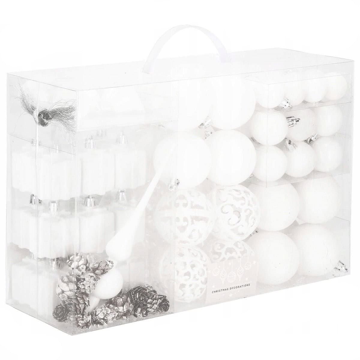 Set globuri si decoratiuni de Craciun, 101 piese, diverse dimensiuni, alb Mob360