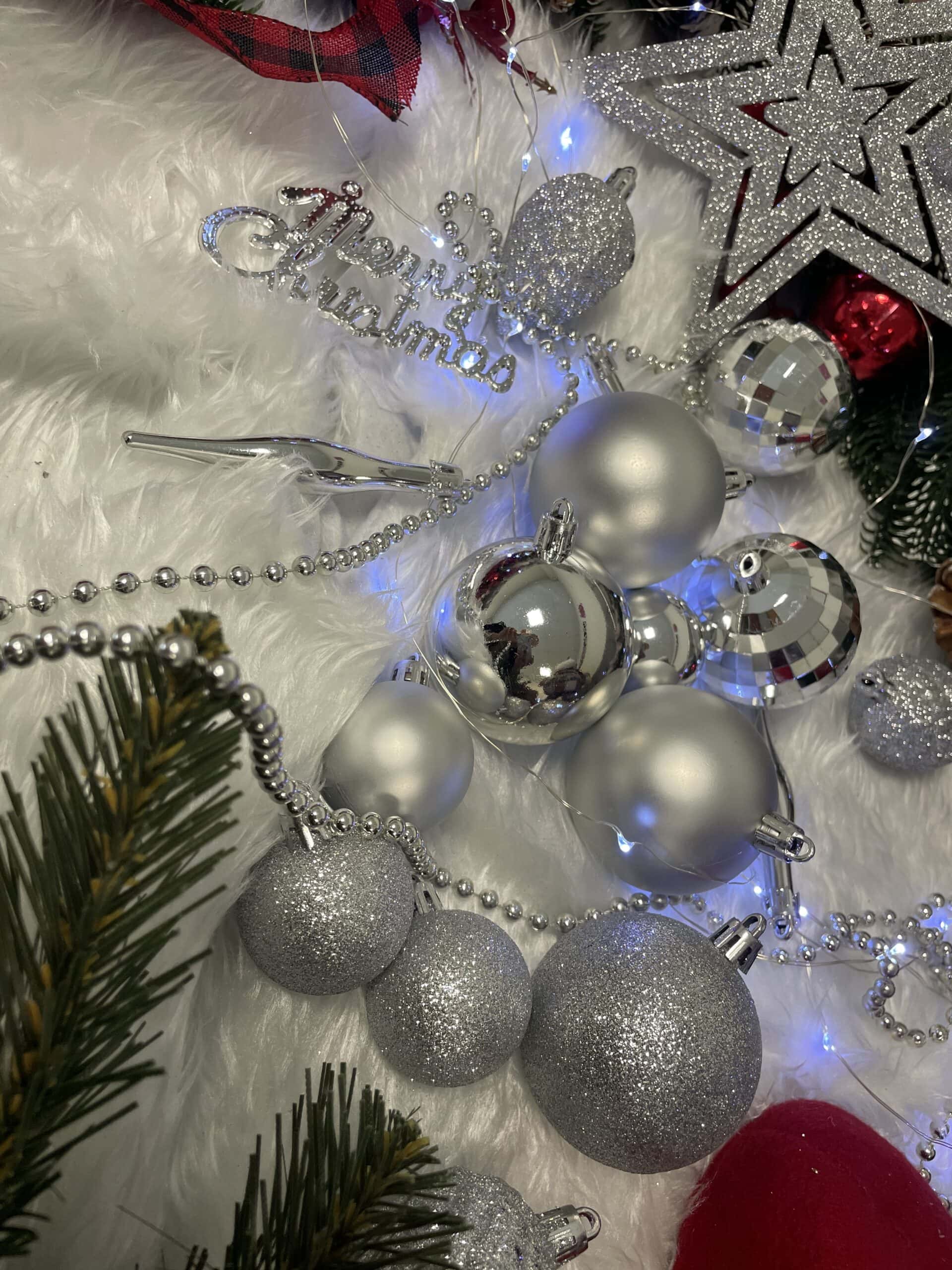 Set globuri si decoratiuni de Craciun, 51 piese, diverse dimensiuni, argintiu Mob360
