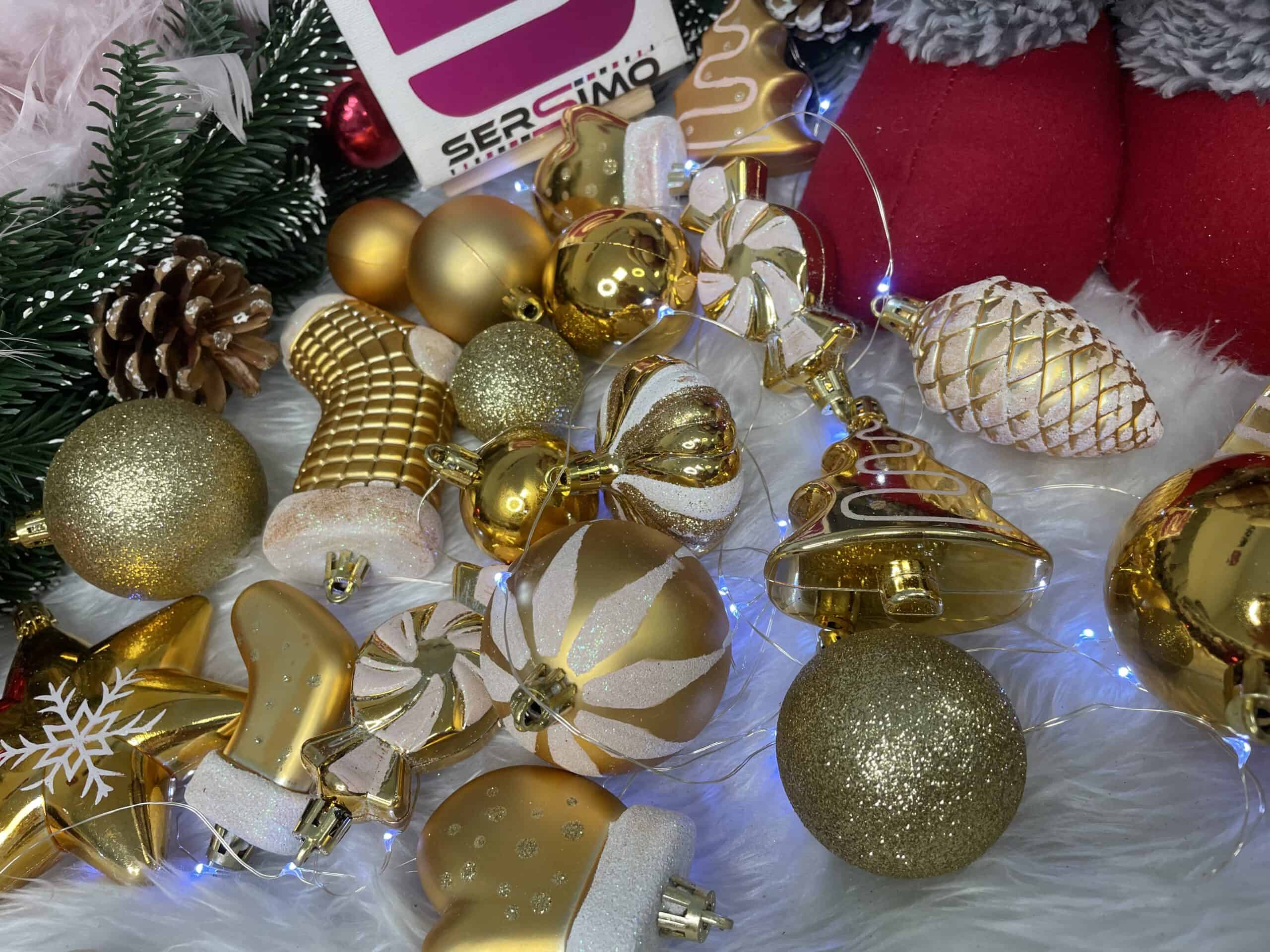 - Globurile si decoratiunile dintr-un set cu o singura culoare va vor permite sa creati un decor minunat pentru brad. Arata frumos in timpul zilei si dupa intuneric, insotite de iluminat festiv. Setul include snururi care va permit sa agatati globurile rapid si usor in locul dorit. Designul din plastic creste siguranta datorita materialului incasabil. Alegerea lor in locul globurilor de sticla va contribui la siguranta celor mici din casa. Diversele dimensiuni va permit sa creati modele inedite de aranjare a bradului de Craciun. Culoare: auriu