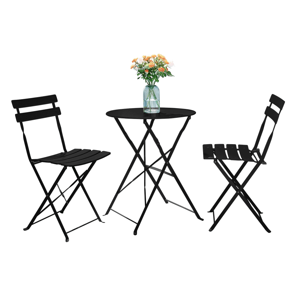 Material: oţel Culoare: neagră Dimensiuni masă (LxAxÎ): 59,5×59,5×71 cm Dimensiuni scaun (LxAxÎ): 42x51x81 cm Înălţime scaun: 45 cm Adâncime scaun: 30/38 cm Lăţime scaun: 42 cm Înălţime spătar: 41 cm Lăţime spătar: 42 cm Capacitate de încărcare a mesei: 60 kg Capacitatea de încărcare a scaunului: 100 kg Set de 3 piese 1x masă 2x scaune Setul este pliabil Livrat asamblat