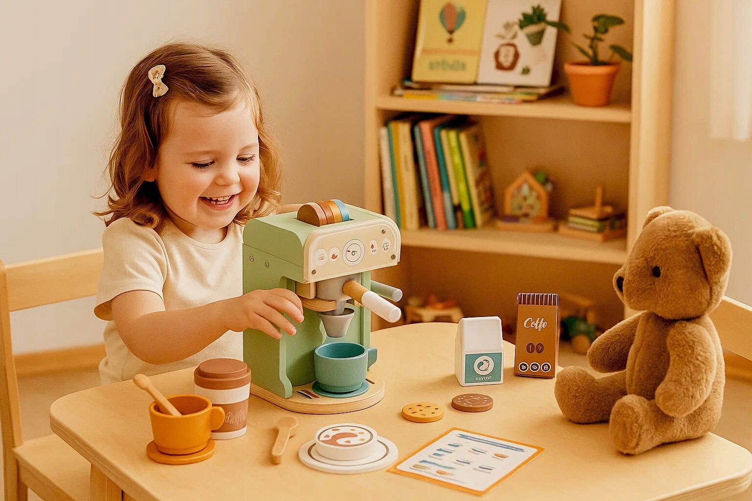 - Setul de joaca tip cafenea din lemn este perfect pentru dezvoltarea imaginatiei si creativitatii copiilor. Cu un design realist si accesorii variate, cei mici pot intra in rolul unui barista si pot recrea scene din viata de zi cu zi. Elementele sunt realizate din lemn, fiind rezistente si sigure pentru utilizare. Caracteristici principale: