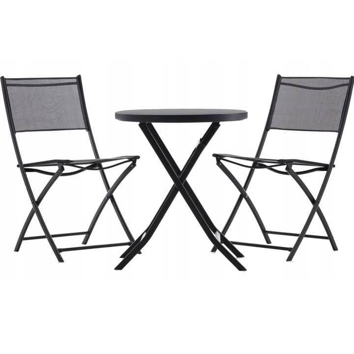 Set mobilier balcon pliabil cu masa sticla si 2 scaune, structura metalica, 60×70 cm, negru Mob360