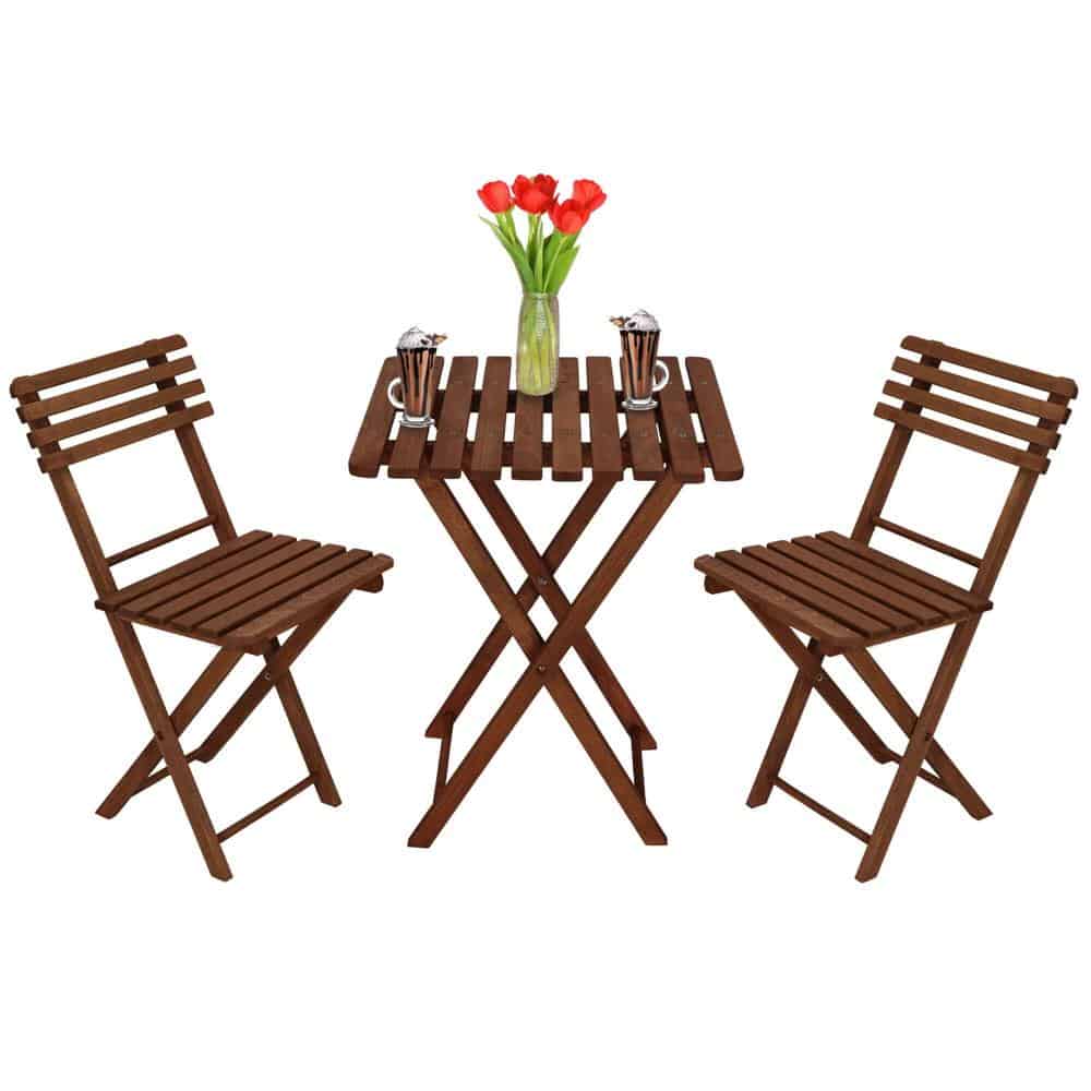 Set mobilier balcon sau terasa din lemn de fag, pliabil, masa 52x51x65 cm si 2 scaune, maro inchis Mob360 – produs disponibil în magazinul Mob360.