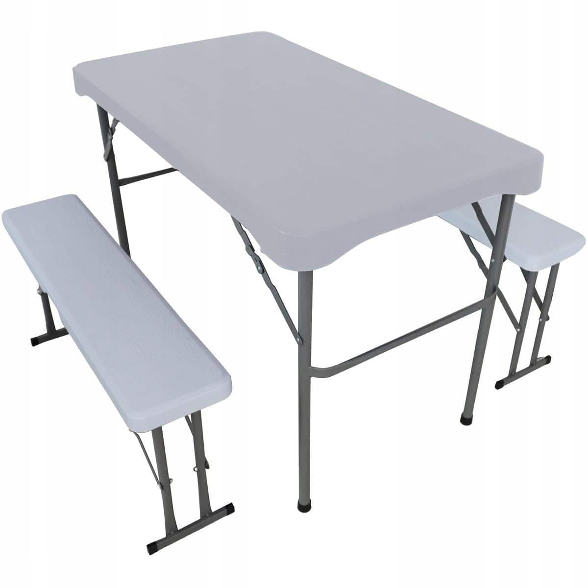 Set mobilier de camping pliabil, masa cu 2 banci, structura otel cu HDPE, 108x60cm, alb Mob360 – produs disponibil în magazinul Mob360.