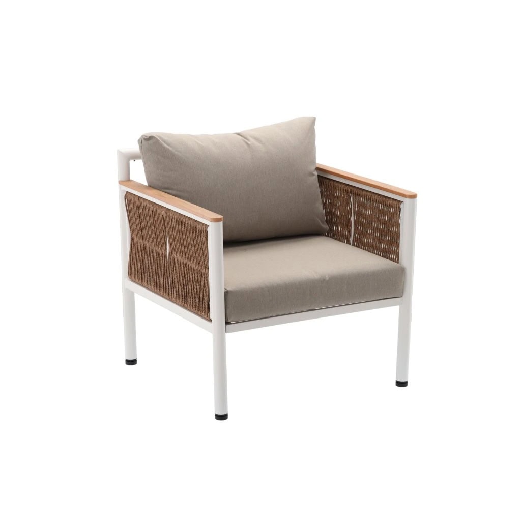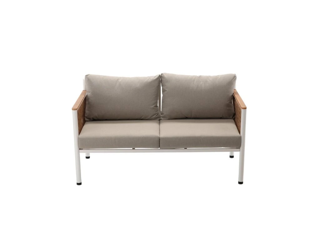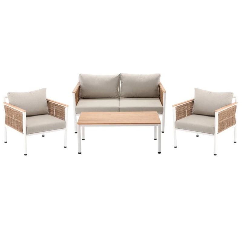 Set mobilier gradina Belgrad 4 piese, cu perne, canapea 2 locuri, 2 fotolii si masa, cadru aluminiu, 129x68x70 cm, bej Mob360