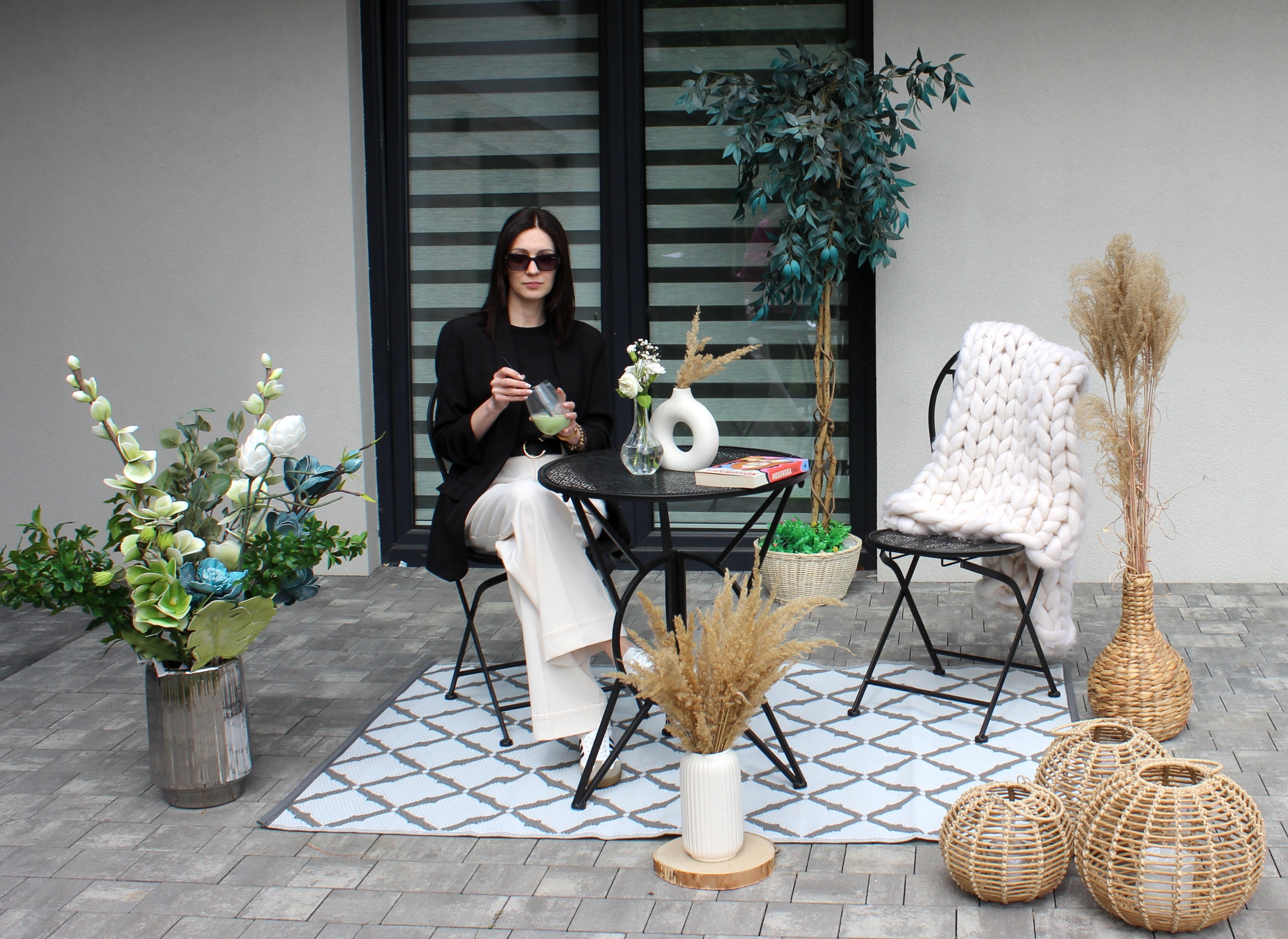Specificatii: Scaun: 39,5 × 42,5 × 94 cm Masa: 70 × 75 cm Material: metal 3 piese: 2 scaune + 1 masa Culoare: negru Setul de mobilier gradina metalic SUSAN este alegerea ideala pentru amenajarea unui balcon, a unei terase sau a unei gradini in stil vintage. Designul elegant, cu ornamente decorative atent lucrate in metal si finisaj mat, ofera un aspect rafinat si luminos oricarui spatiu exterior. Este potrivit atat pentru locuinte, cat si pentru cafenele sau zone comerciale amenajate in stil clasic. Structura metalica solida asigura stabilitate si rezistenta in timp, iar scaunele au constructie fixa, nedezasamblabila, ceea ce le confera durabilitate sporita. Setul se pliaza usor si nu necesita unelte pentru montaj, fiind simplu de instalat si depozitat. Suprafata este usor de curatat si potrivita pentru utilizare in exterior.