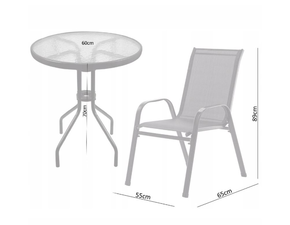 - Setul de mobilier este perfect pentru persoanele care cauta o combinatie intre clasic si elegant. O forma simpla si o impletitura eleganta va incanta pe toata lumea. Se potriveste in orice spatiu – balcon, terasa sau gradina. Masa are sticla calita cu o textura mozaic transparenta (pentru auto-asamblare), ceea ce va permite cu siguranta multi ani de utilizare.Invelisul este realizat din impletitura densa intinsa peste cadru. Caracteristici: